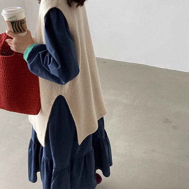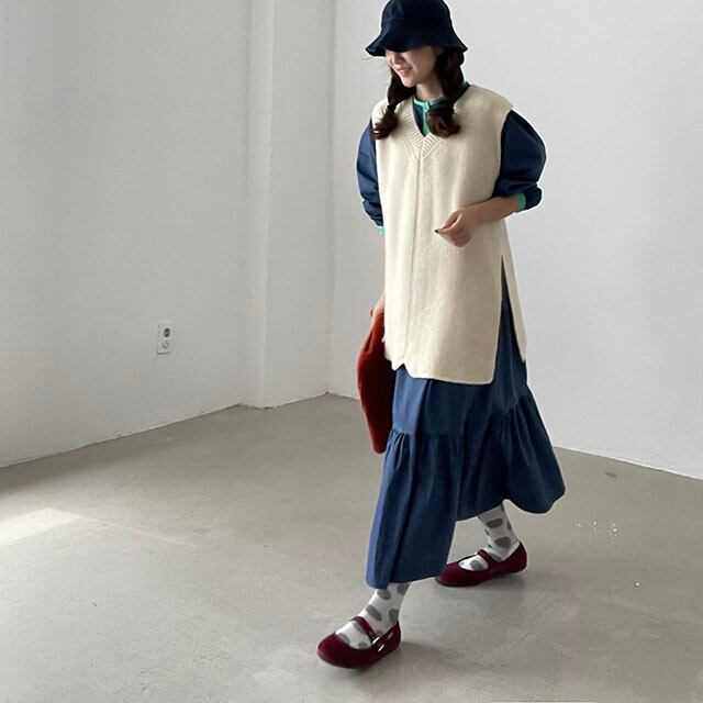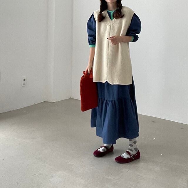 色:アプリコットベスト,ブラウンベスト,白いスカート,ネイビーブルーのスカート