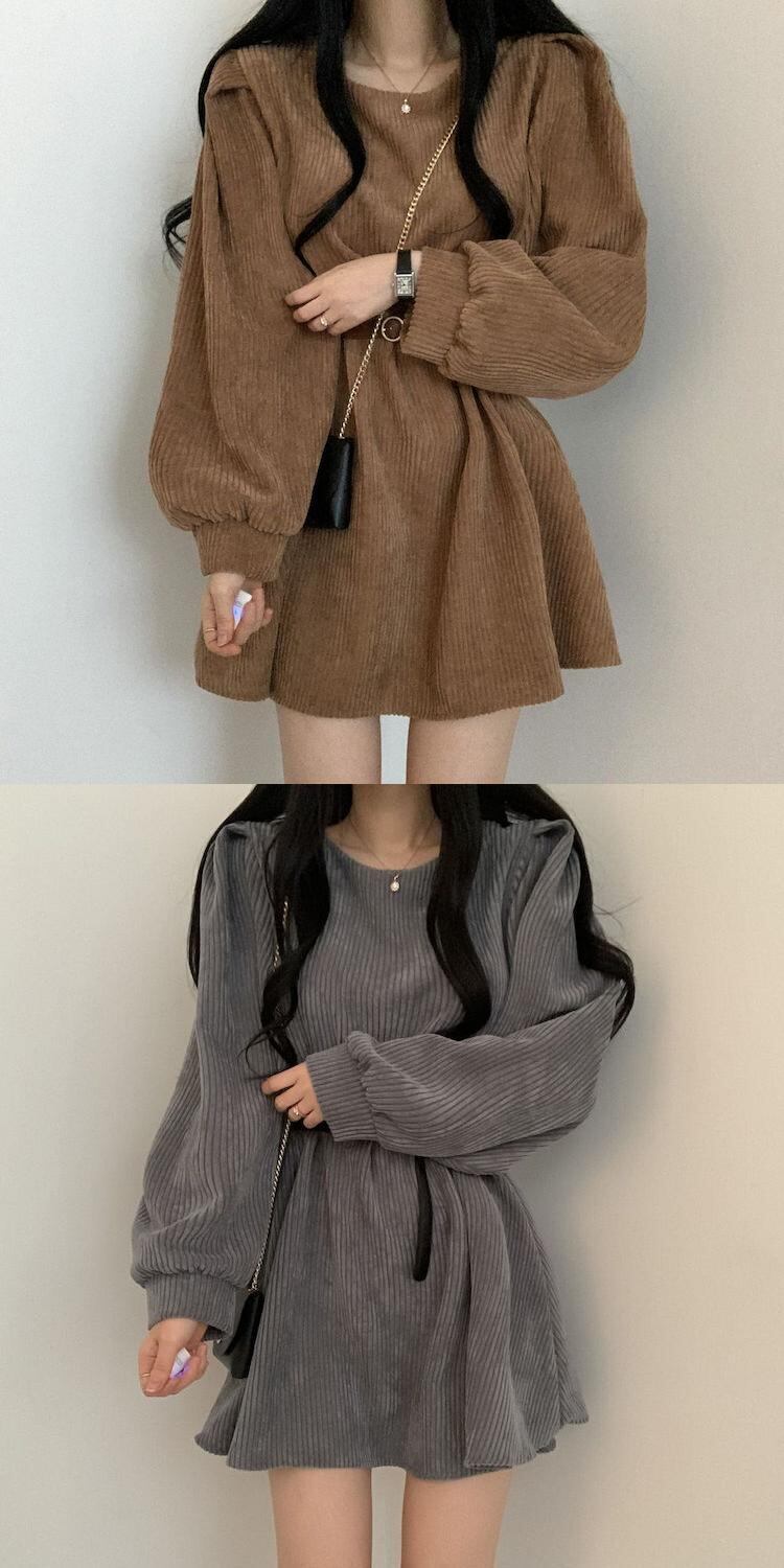 秋物スタンダードラウンドネックスリーブショートスカート ウェストワンピース ロング ランタンスリーブ コットン レトロ レース オータム Oネック レースアップ 長袖 ウエスト muzly79615846497 | Neatly