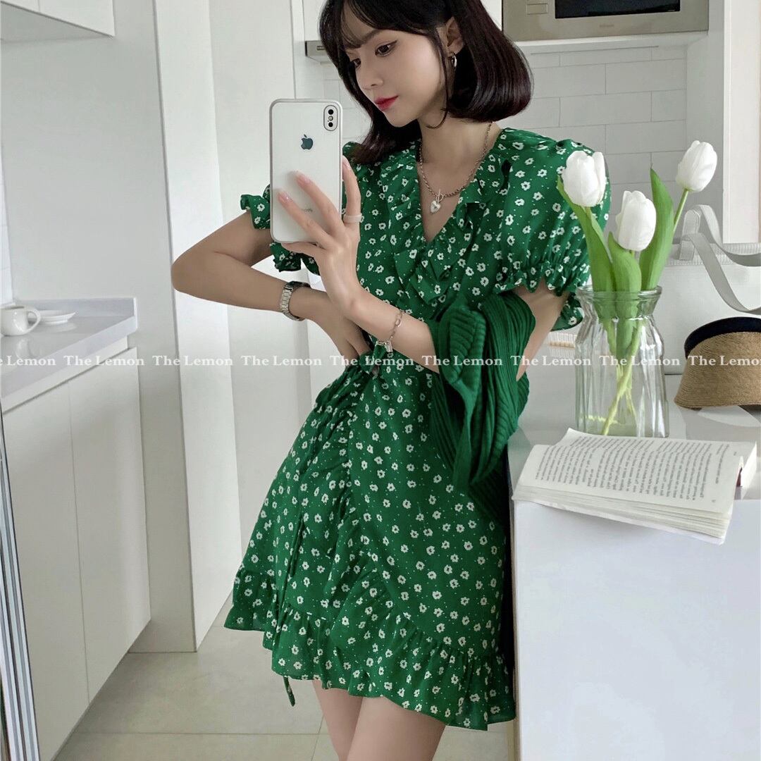 韓国ファッションサイドレースVネックショートスカート 夏服フローラルミニ ワンピースワンピース 大人ガーリー スウィート キュート カジュアル 夏物 花柄 muzly49410988127 | Neatly