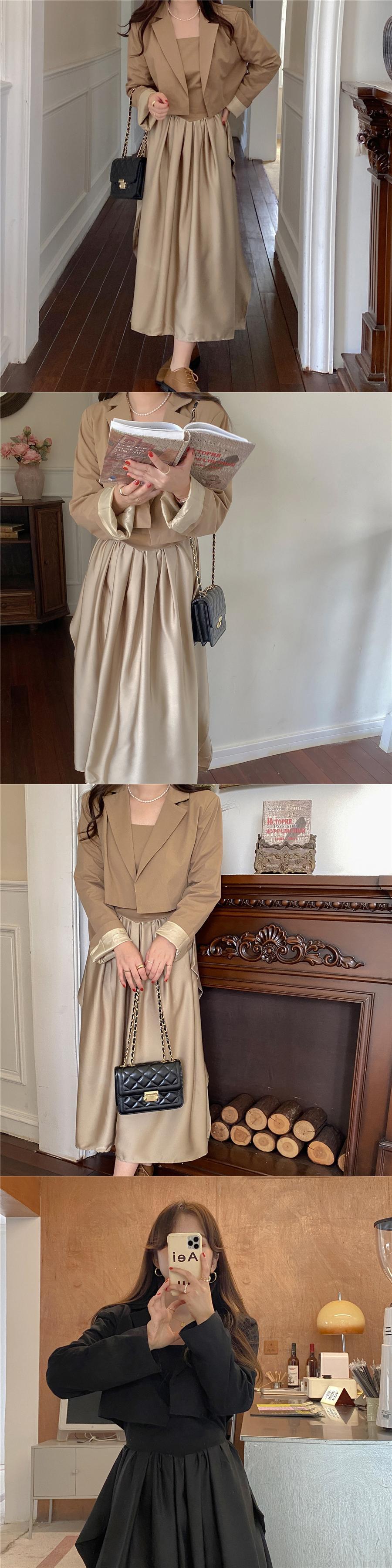 色:アプリコットコート,黒いジャケット,アプリコットドレス,ブラックサスペンダースカート