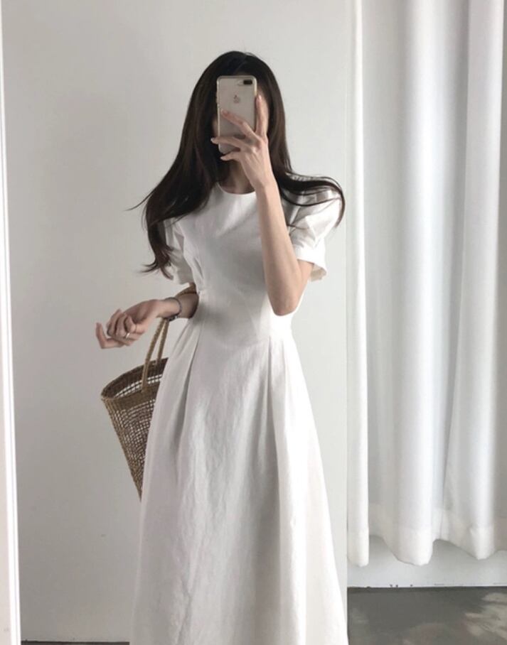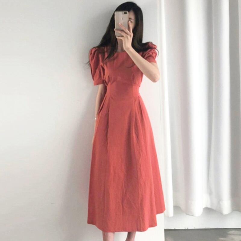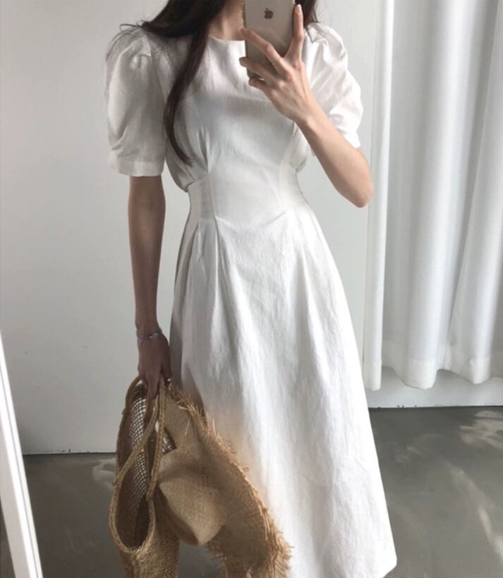 韓国ファッションNEW夏服スタンダードラウンドネックロングウェストミニ ワンピースワンピース レトロ レース 夏物 Oネック レースアップ ウエスト muzly39591018996 | Neatly