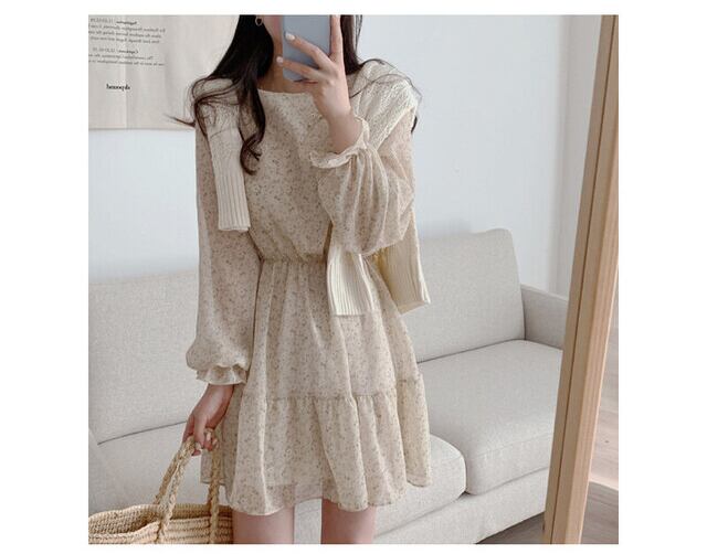 スプリングラウンドネックスリーブフローラルウェスト長袖シフォンワンピースレディース ロング 大人ガーリー スウィート キュート カジュアル 春物 花柄 Oネック ウエスト muzly75671341132 | Neatly