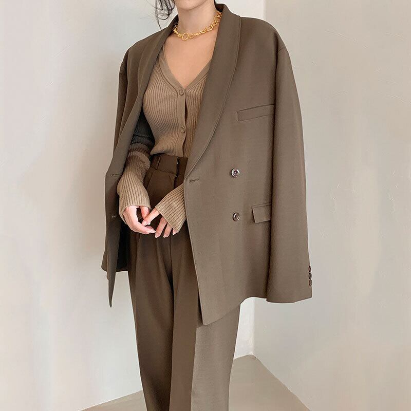色:ベージュスーツ,茶色のスーツ,ベージュパンツS,ベージュパンツM,ブラウンパンツS,ブラウンパンツM