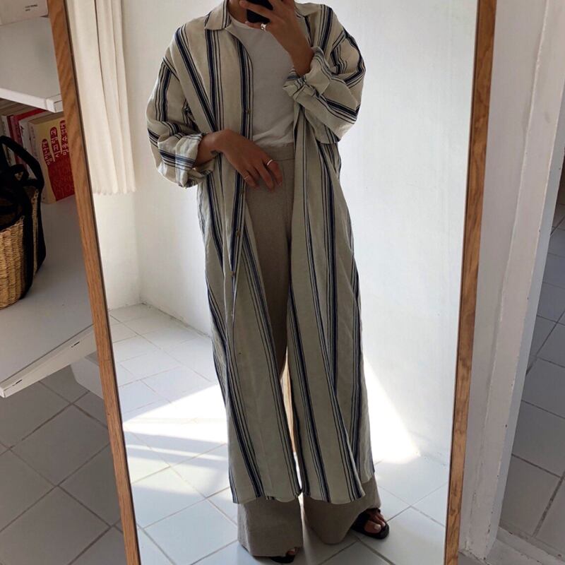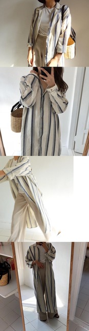 秋物スタンダードルーズストライプロングシャツ 長袖スリーブワンピース レトロ オータム muzly86322890433