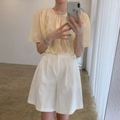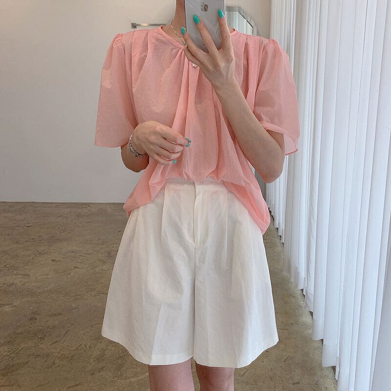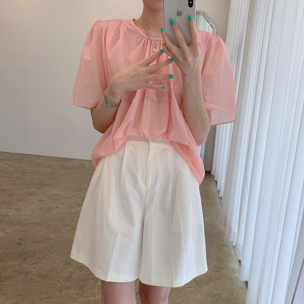 韓国ファッションNEW夏服ラウンドネックルーズシャツ ハイウェスト薄手パンツ ショーツ レディース 大人ガーリー スウィート キュート カジュアル 夏物 Oネック ウエスト muzly85820601942 | Neatly