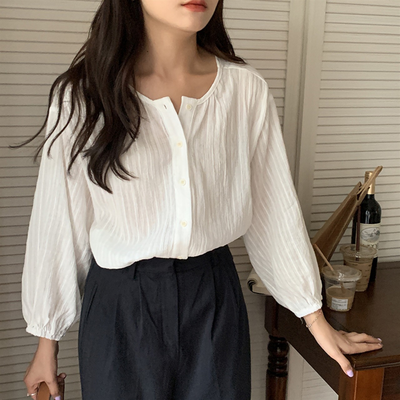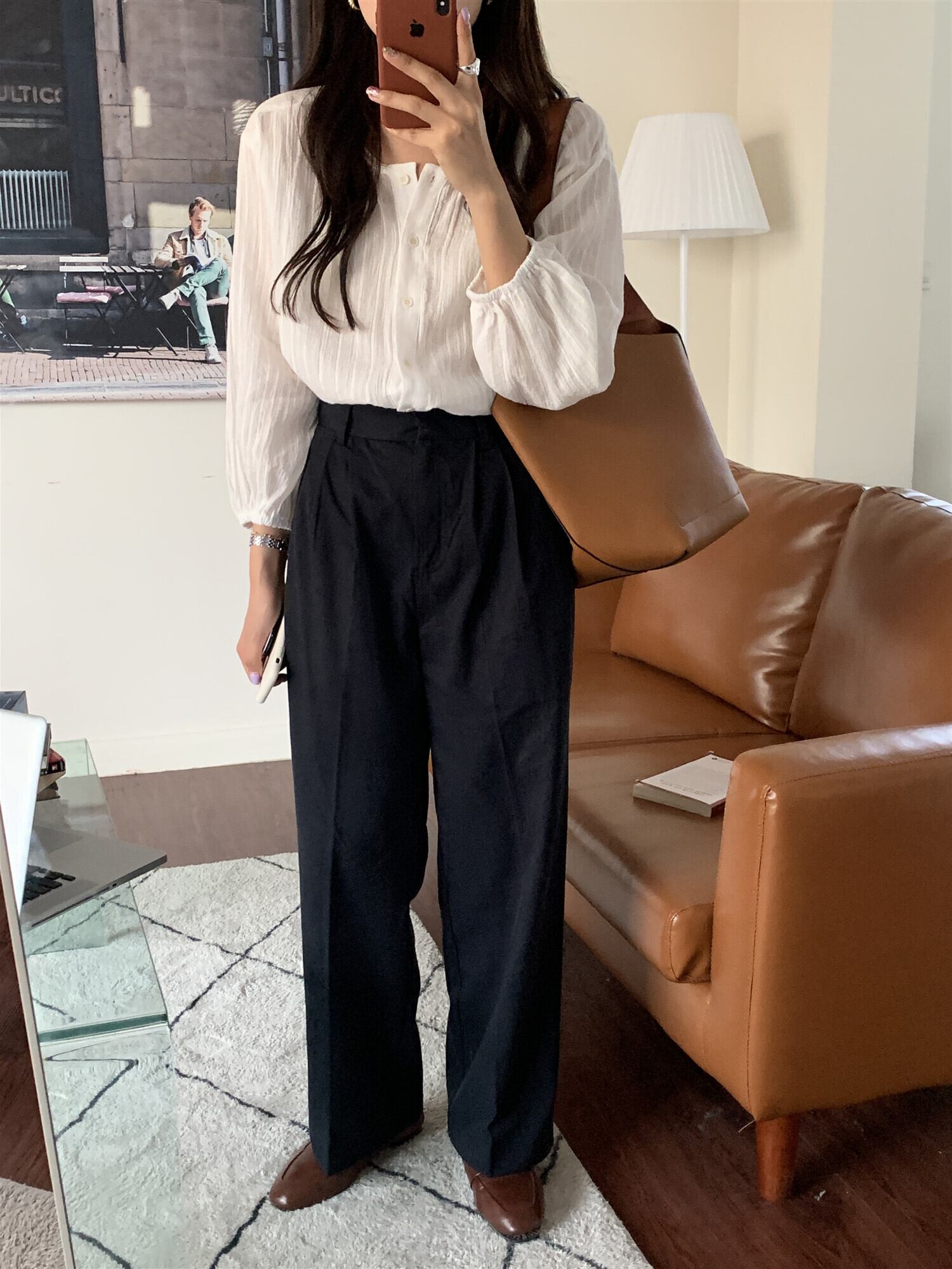 色:白のシャツ,ネイビーブルーのズボン