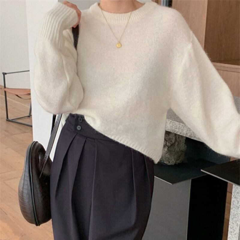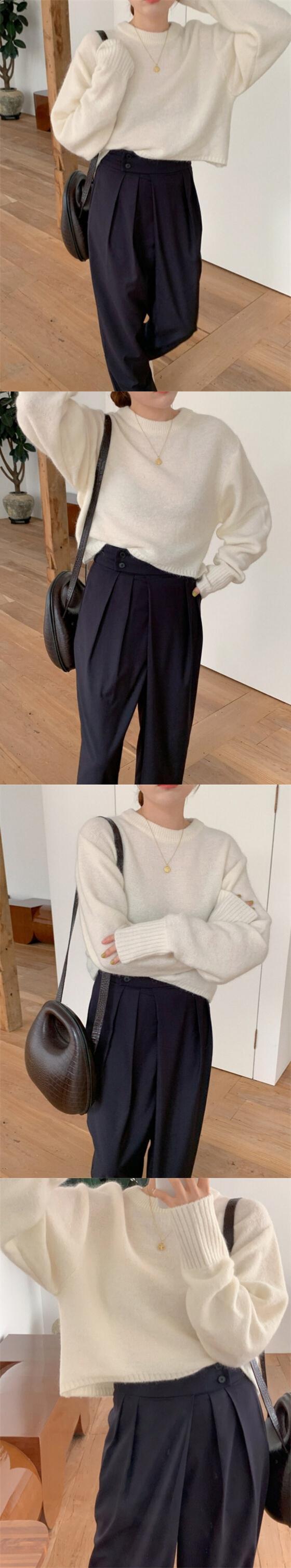 色:白いセーター,ネイビーパンツS,ネイビーパンツM