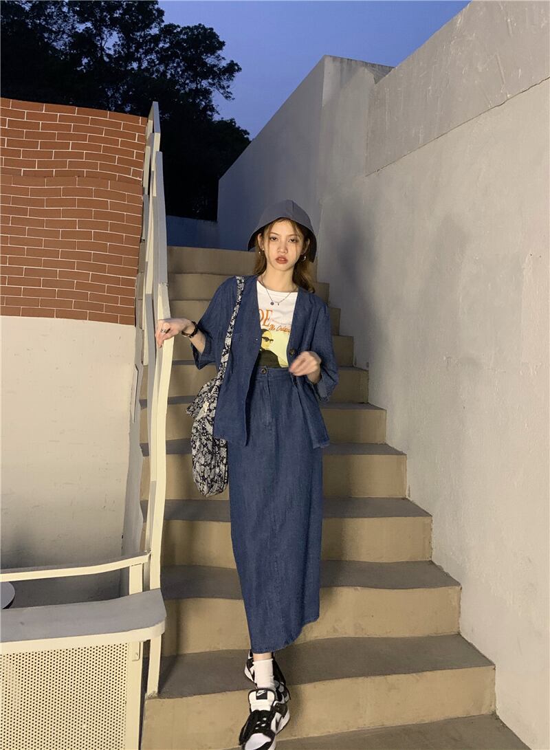 色:デニムカーディガン,スカート