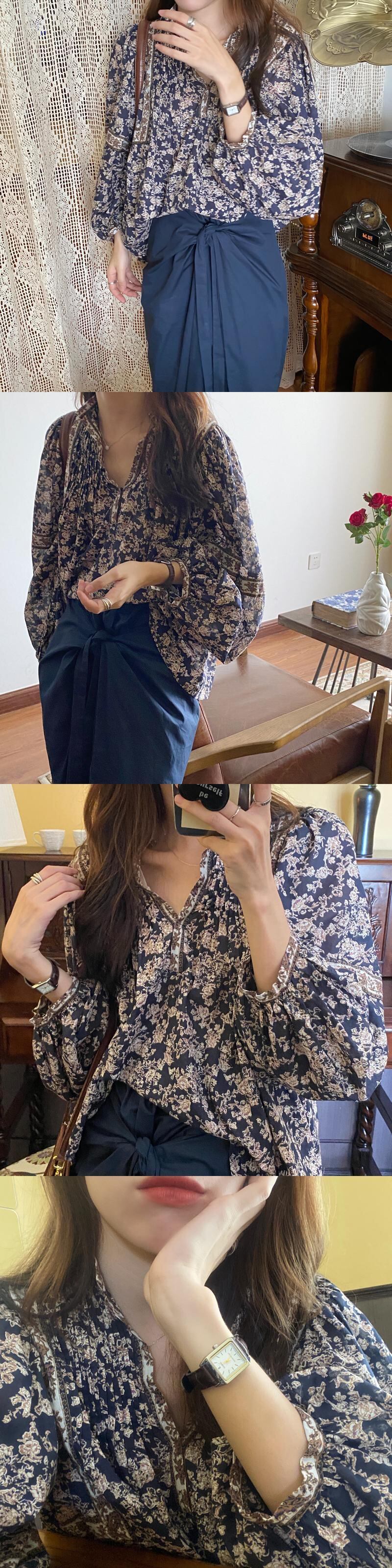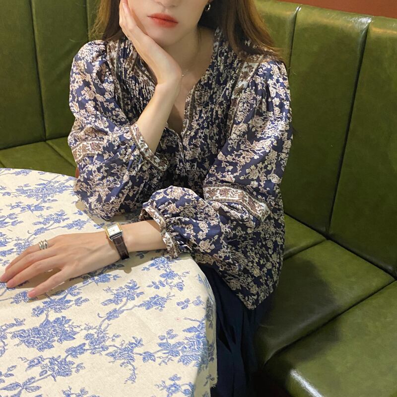 韓国ファッションスタイルスリーブフローラルブラウス ルーズシャツ ロング ランタンスリーブ 大人ガーリー スウィート キュート カジュアル 花柄 長袖 muzly62203113010 | Neatly