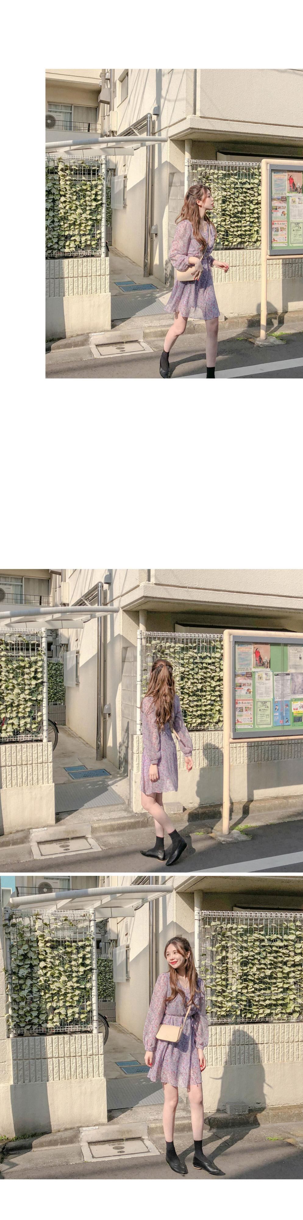 韓国ファッションスタンダードフローラルウェストショートワンピース ロング レトロ 大人ガーリー スウィート キュート カジュアル 花柄 パープル 長袖 ウエスト muzly12553877349 | Neatly