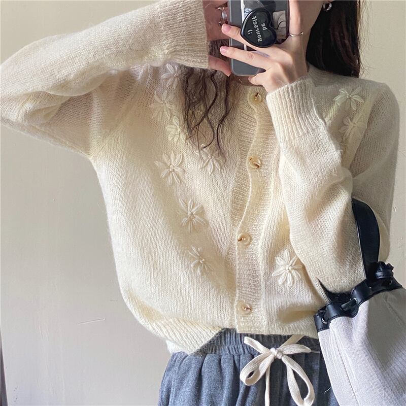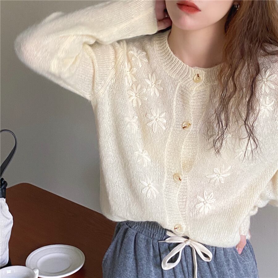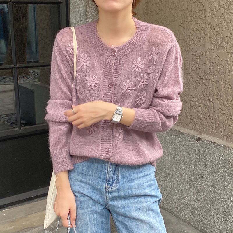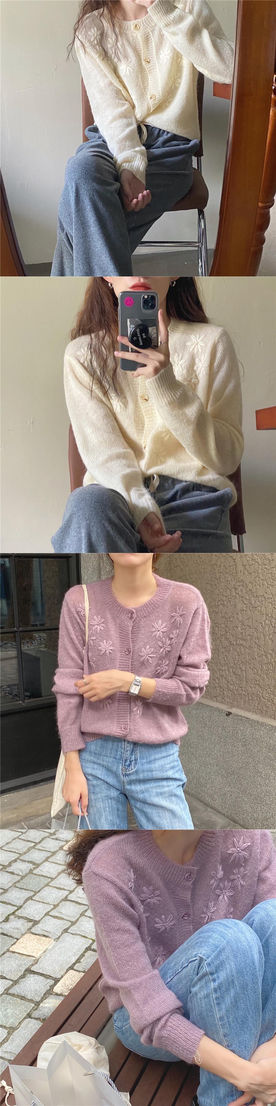 韓国ファッション秋物刺繍ニットカーディガンセーター ジャケット レディース ロング 大人ガーリー スウィート キュート カジュアル オータム フラワーデザイン 長袖 muzly26743410393 | Neatly