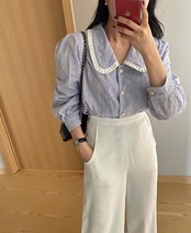 韓国ファッションスプリングカラースリーブシングルブレストFlowerデザイン 長袖シャツ レディース ロング 大人ガーリー スウィート キュート カジュアル 春物 フラワーデザイン muzly13946972255 | Neatly