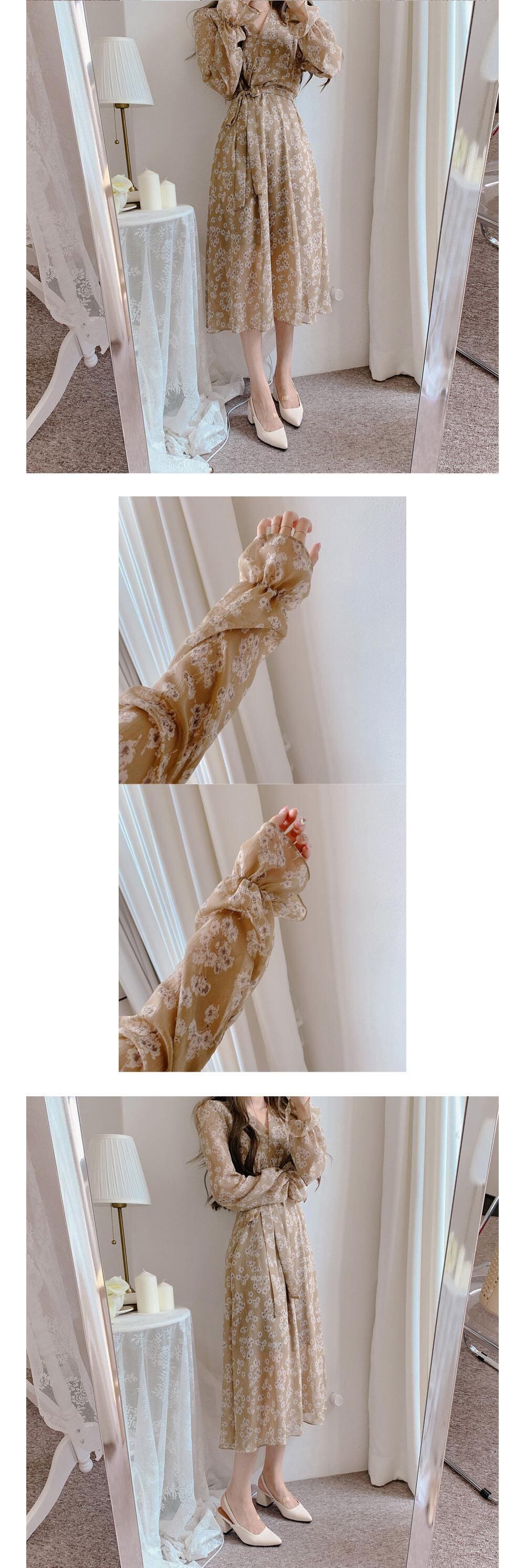 NEW秋物Vネックシフォンフローラルワンピースウェスト ロング レース 大人ガーリー スウィート キュート カジュアル オータム 花柄 レースアップ 長袖 ウエスト ミドル丈 muzly61163613597 | Neatly