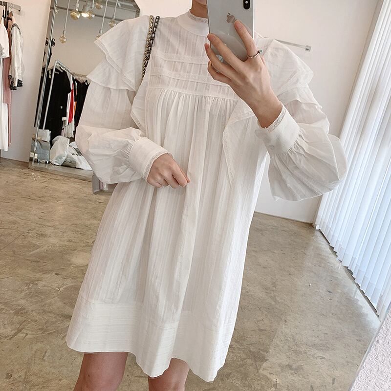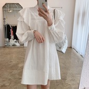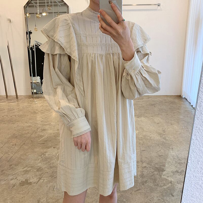 秋物スリーブスカート レースカラーショートルーズワンピース ロング ランタンスリーブ 大人ガーリー スウィート キュート カジュアル オータム 長袖 muzly66782460688 | Neatly