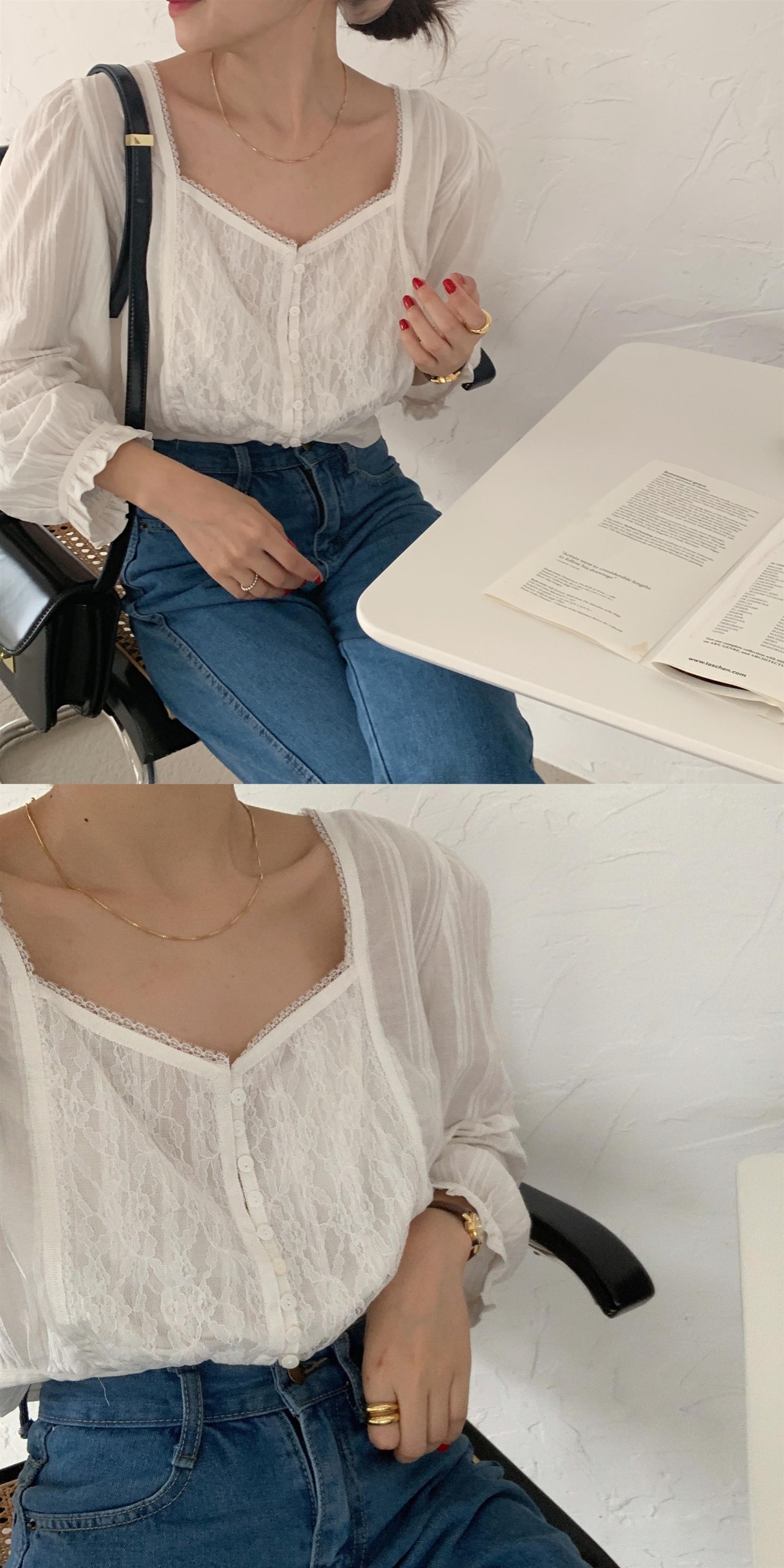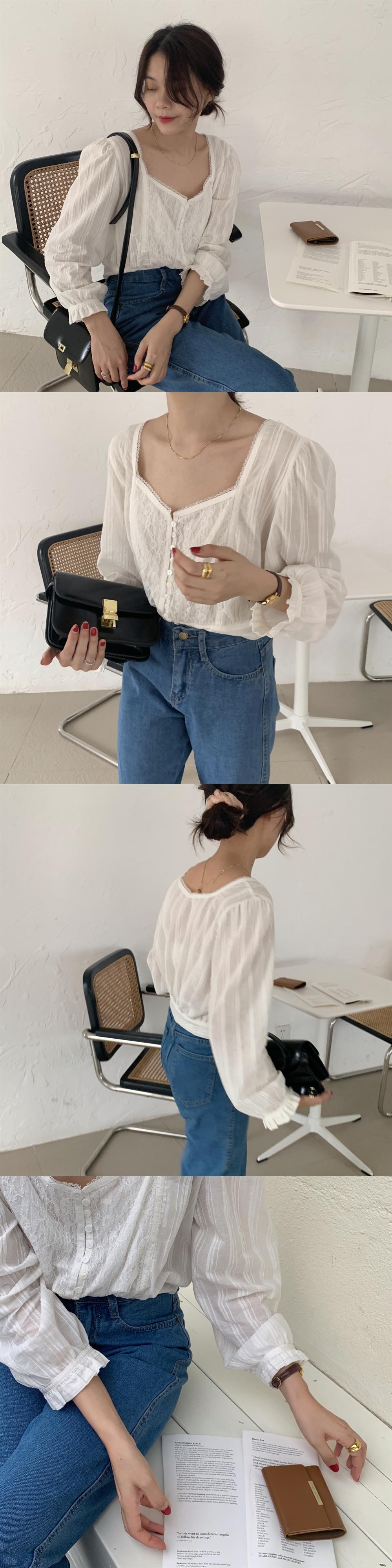 韓国ファッションスプリングレースショートトップス カラースリムシャツ レディース ロング 大人ガーリー スウィート キュート カジュアル 春物 スクウェア 長袖 muzly33306177995 | Neatly