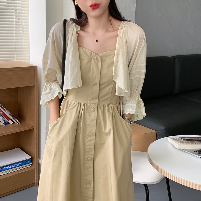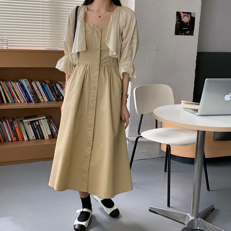 色:アプリコットカーディガン,カーキ色のドレス