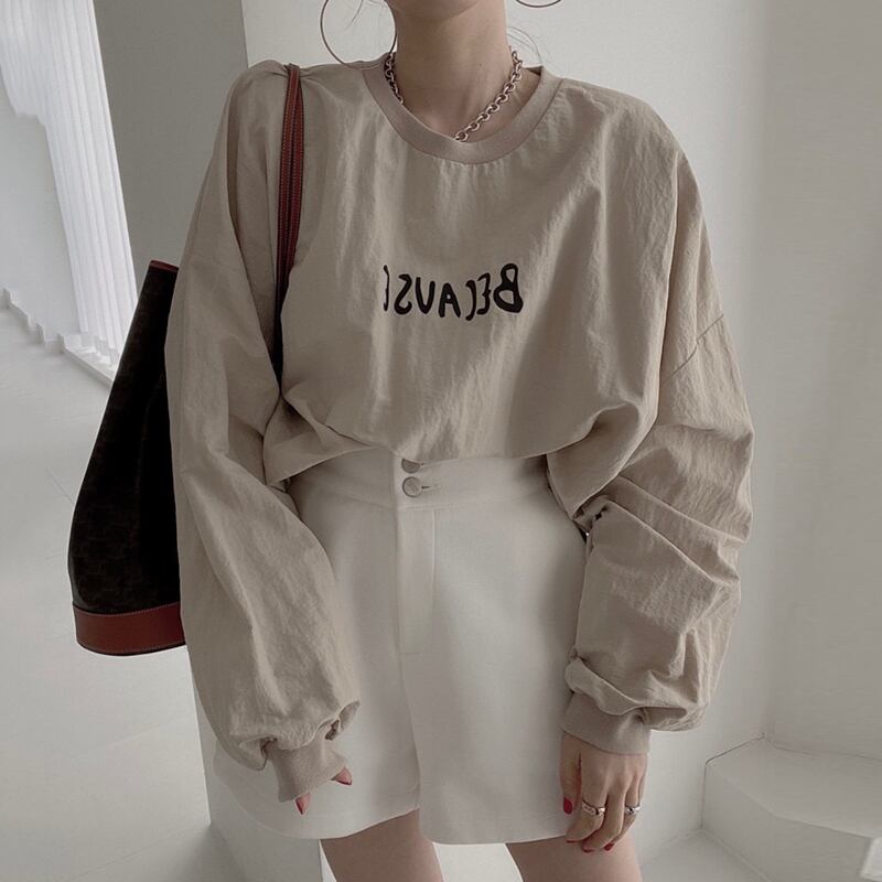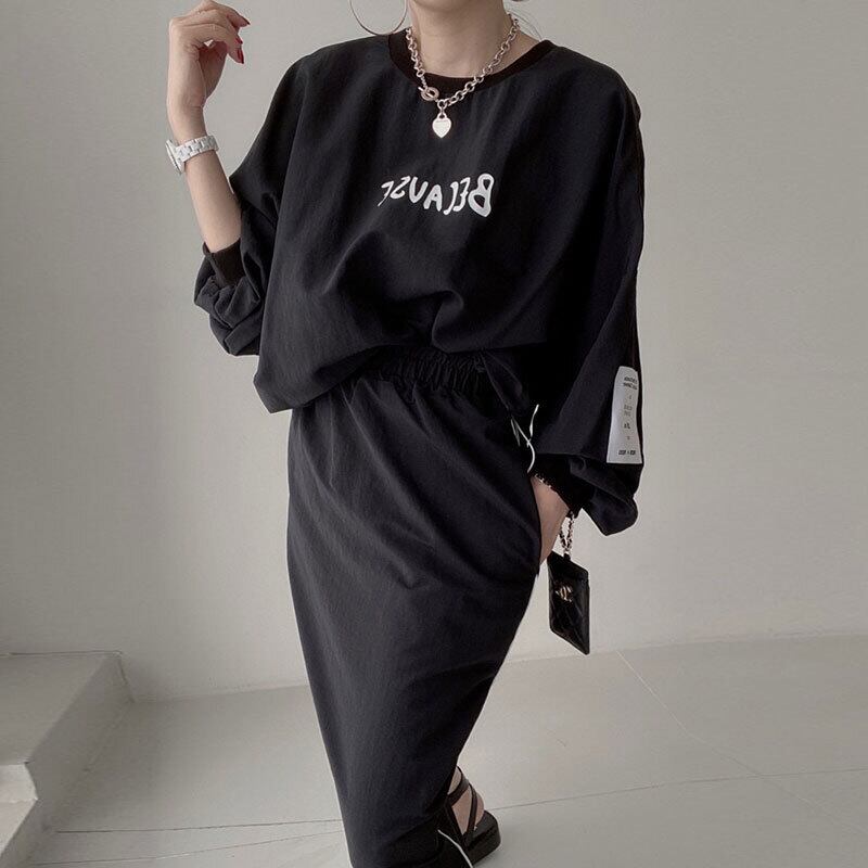 秋物スタンダードラウンドネック薄手ルーズTシャツセーター ハイウェストウェストスカート レディース ロング レトロ オータム Oネック 長袖 ウエスト muzly90361725723 | Neatly