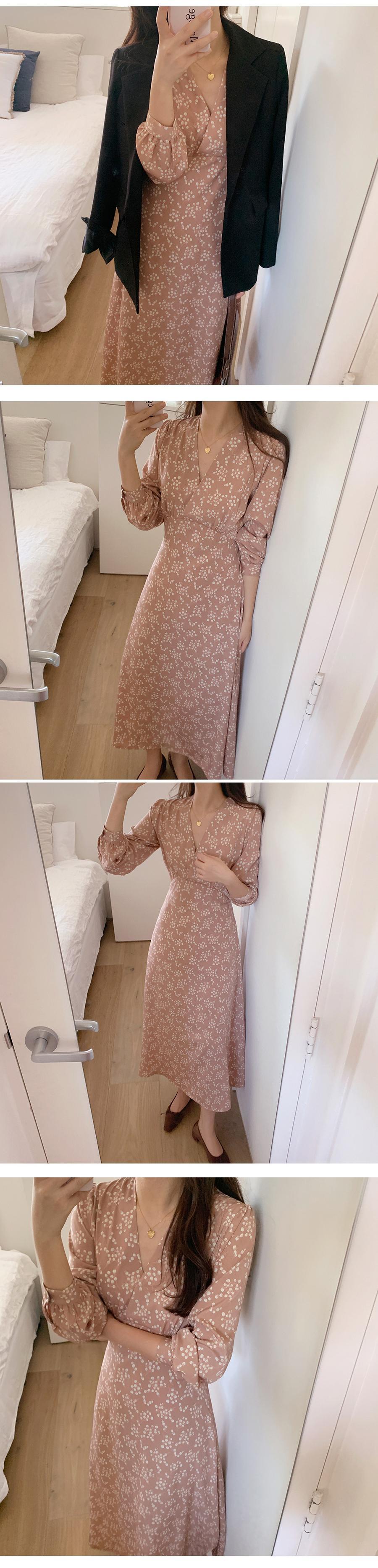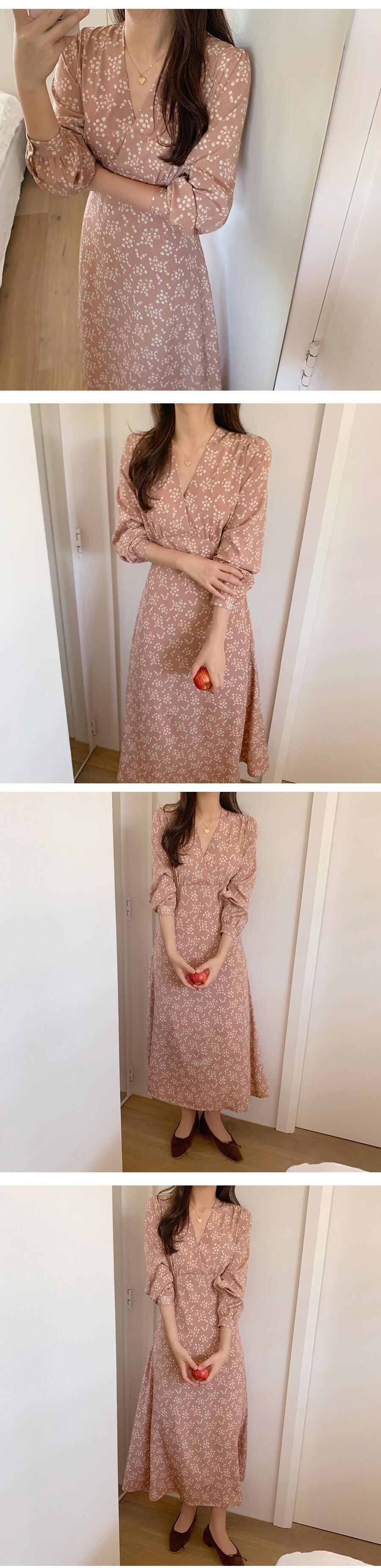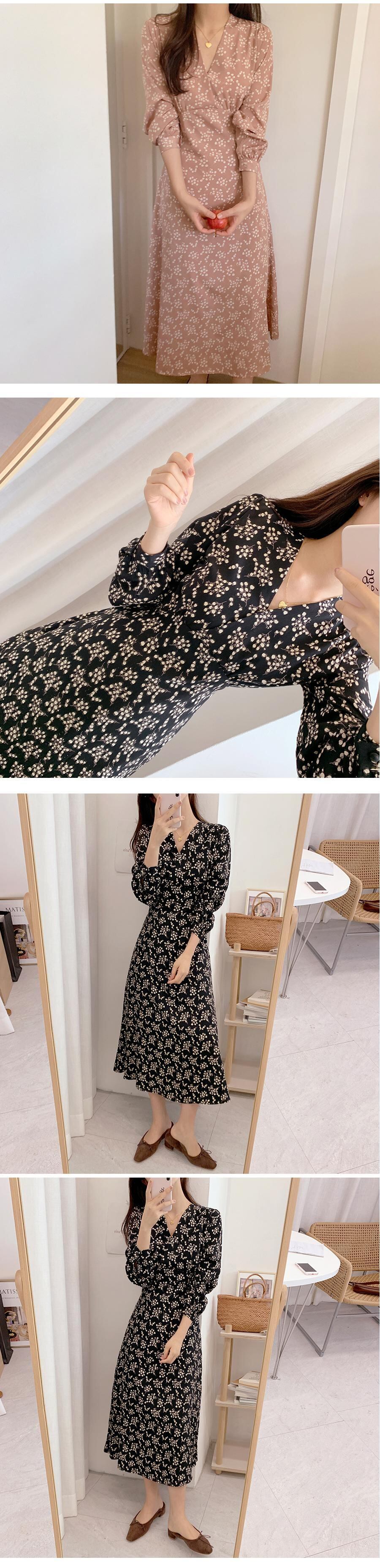 韓国ファッション秋物ウィンターフローラルVネックウェストワンピースレディース ロング レース オータム 冬物 花柄 レースアップ 長袖 ウエスト ミドル丈 muzly75883697292 | Neatly