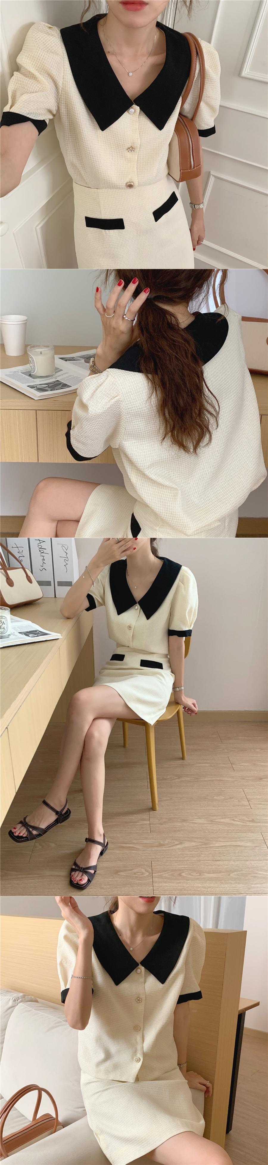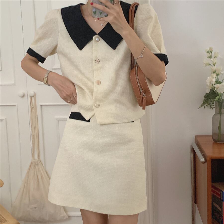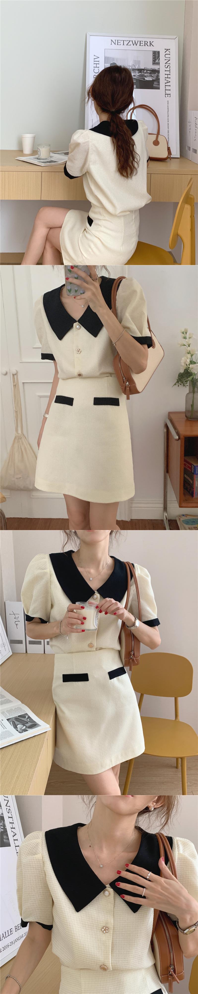 色:グリーントップ,緑のスカート,ベージュトップ,ベージュのスカート