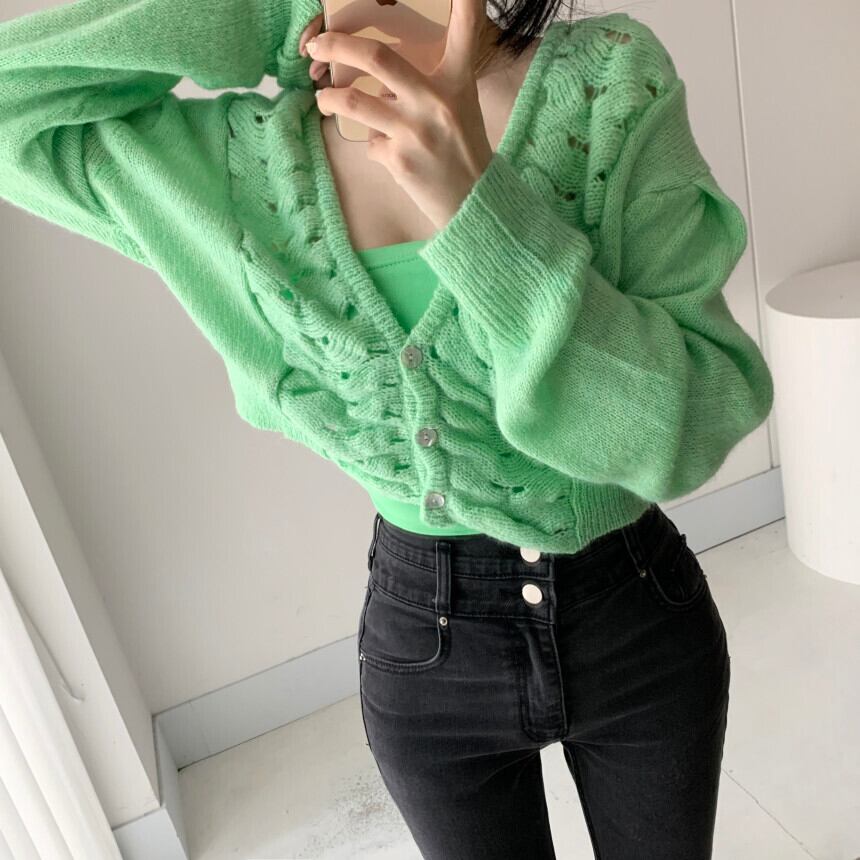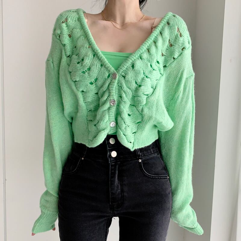 韓国ファッション秋物ウィンターソリッド カラートップス Vネックショートニットカーディガンセーター コート ロング オータム 冬物 ソリッドカラー 長袖 muzly27847884557 | Neatly