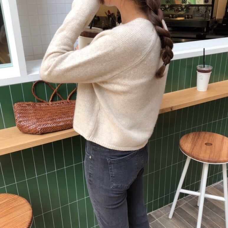 NEW秋物スタンダードホワイトラウンドネックニットカーディガンショートセーター ジャケット レディース ロング レトロ オータム Oネック パープル 長袖 muzly26687638354 | Neatly