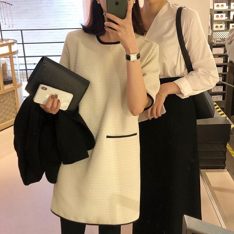 韓国ファッションNEW秋物ウィンターカラースカート ツィードラウンドネックミニ ワンピースワンピース 大人ガーリー スウィート キュート カジュアル オータム 冬物 Oネック muzly33179006041 | Neatly