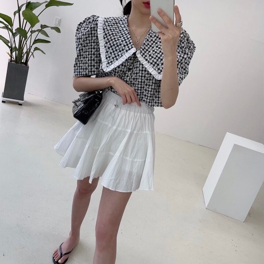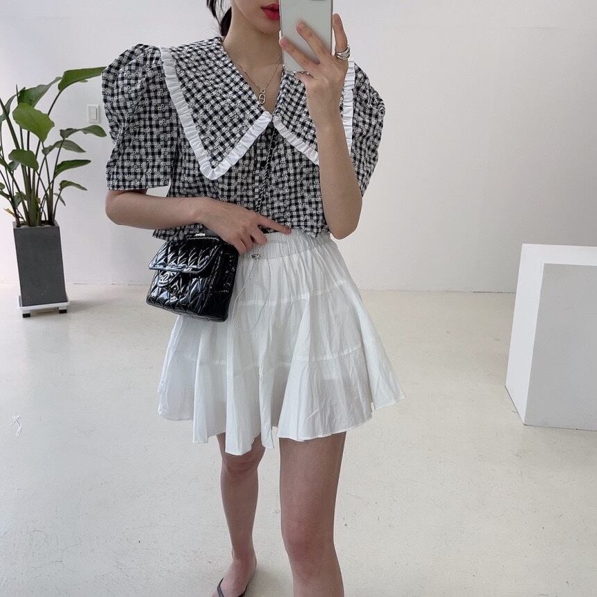 色:ブラックトップ,グースイエロートップ,白いスカート