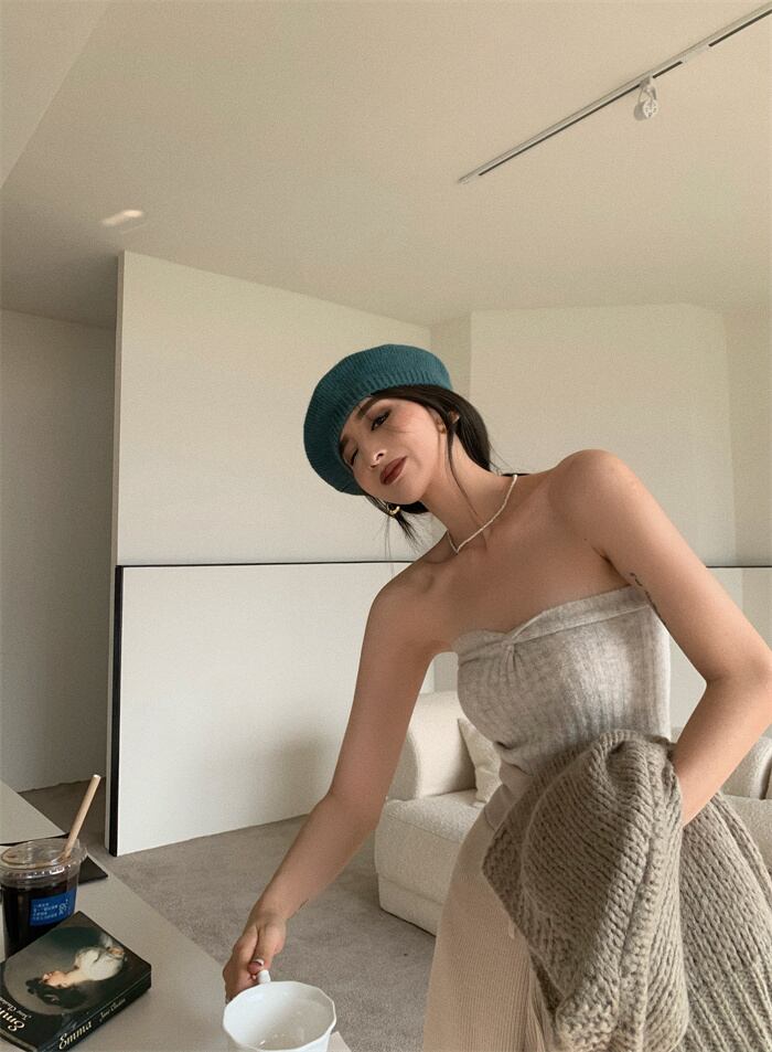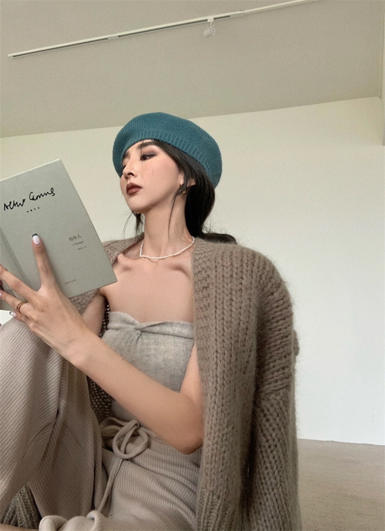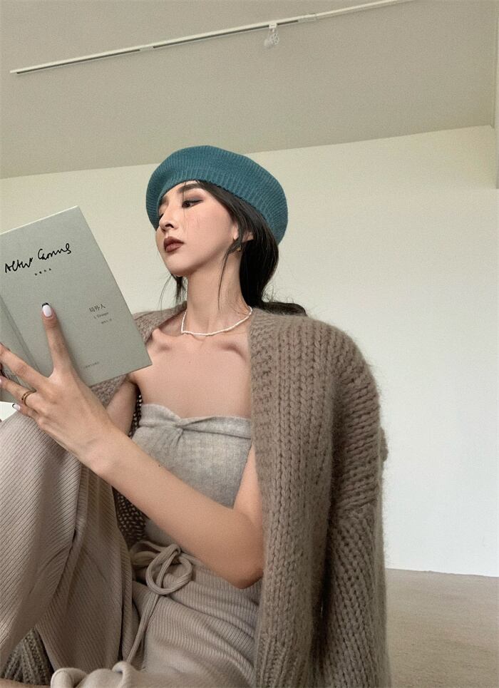 色:グレーのコーヒーカーディガン,アプリコットカーディガン,ライトグレーのチューブトップ,カードアプリコットチューブトップ,カードカラーパンツ33413#,アプリコットパンツ33413#
