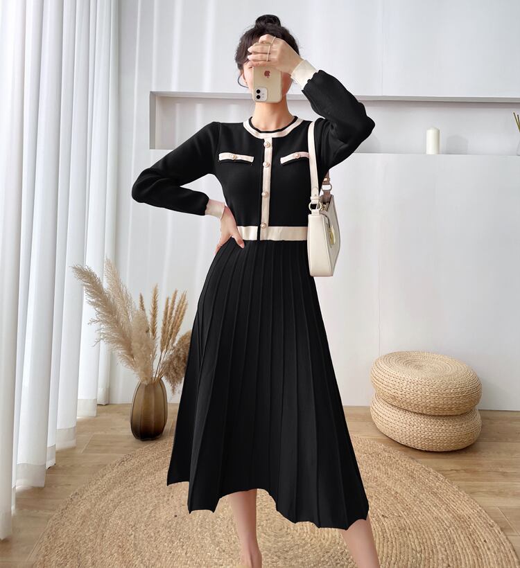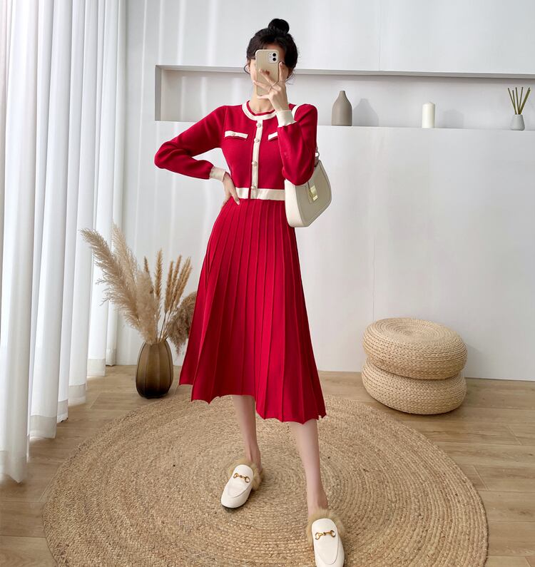 コート セーター スカート レディース秋物ウィンターウェストプリーツAラインニットワンピース オータム 冬物 スタイル ウエスト ミドル丈 mengruling22512573761 | Neatly