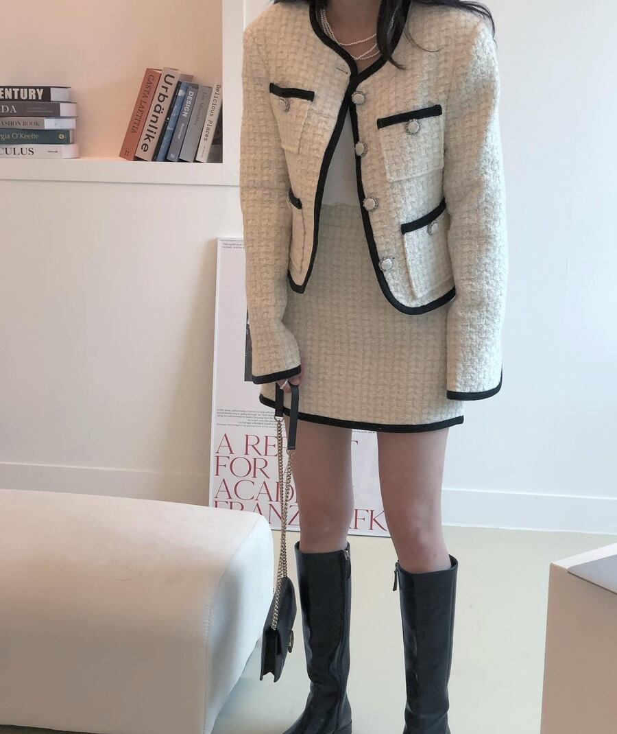 色:黒いジャケット,白いコート,黒スカート,白いスカート