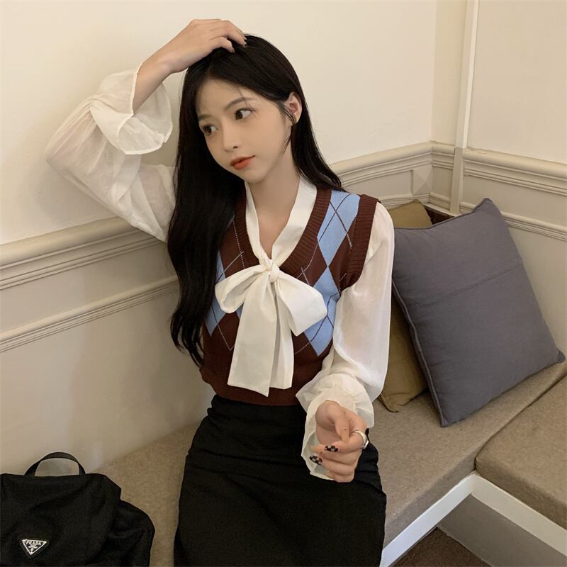 色:ベスト,アプリコットシャツ