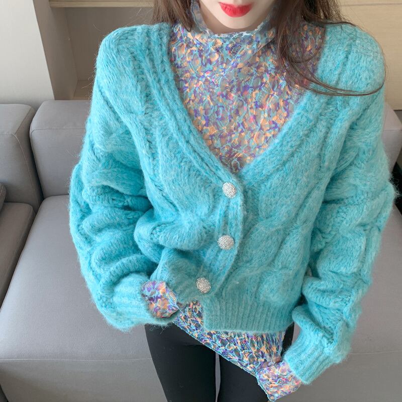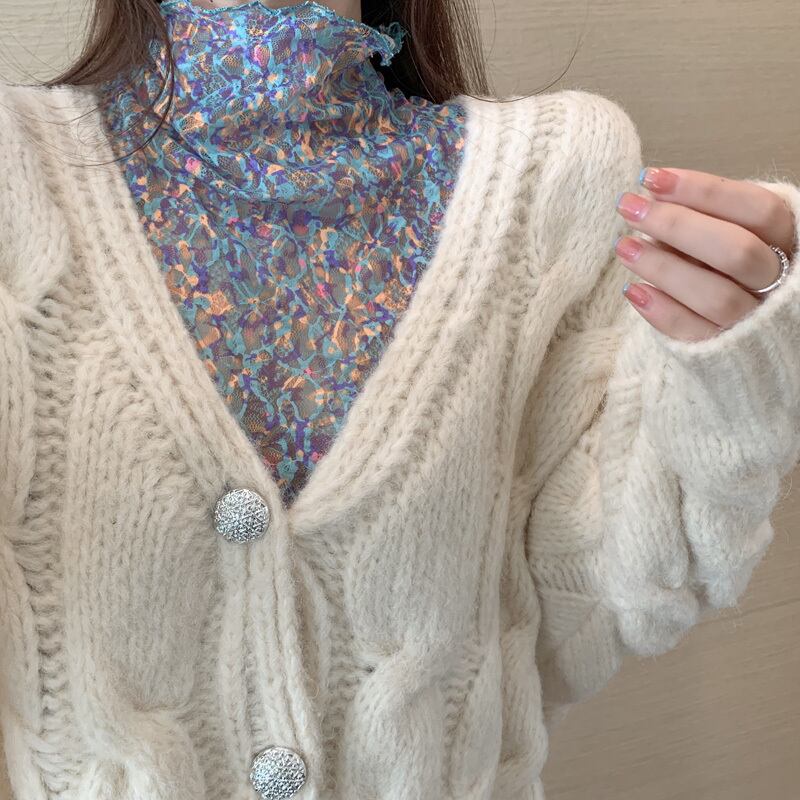 色:花柄レースシャツ,セーターカーディガンブルー,セーターカーディガンベージュ