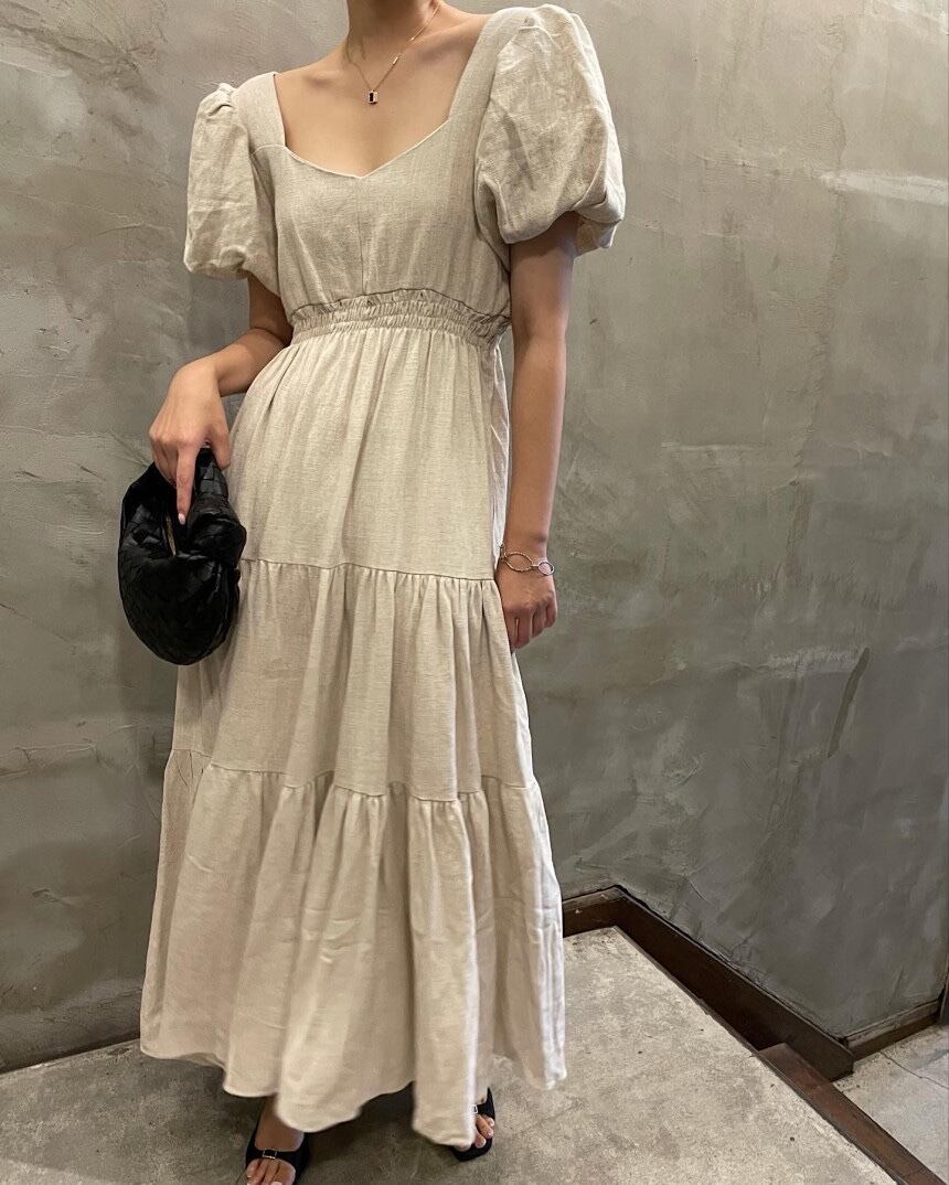 NEW夏服スタンダードVネックスリーブロングスカート ソリッド カラーウェストミニ ワンピースワンピースレディース レトロ 夏物 ソリッドカラー ウエスト muzly9775647245 | Neatly
