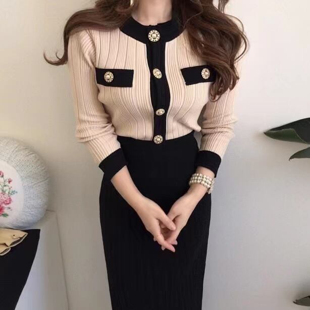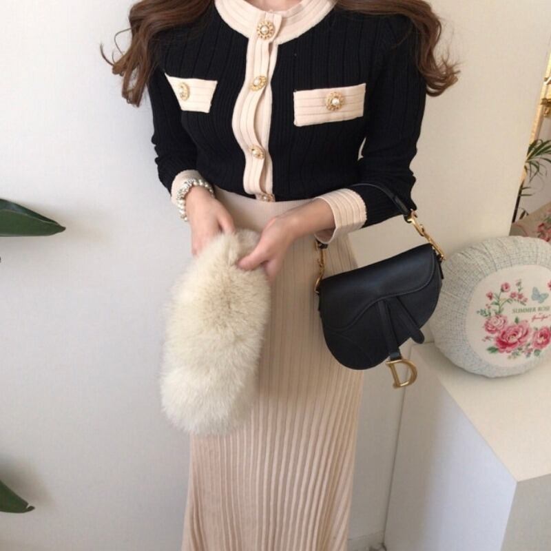 色:黒スカート,アプリコットスカート,黒いセーター,アプリコットセーター