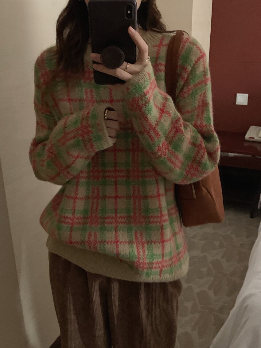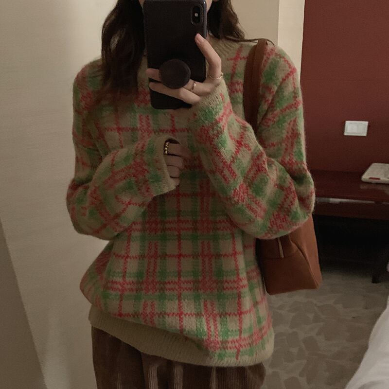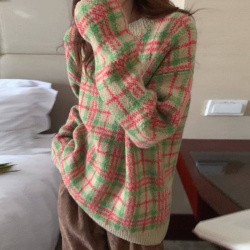 韓国ファッション秋物ウィンタースタンダードスタイルパターンセーター ルーズラウンドネック長袖スリーブプルオーバー ロング レトロ オータム 冬物 Oネック muzly14669816240 | Neatly
