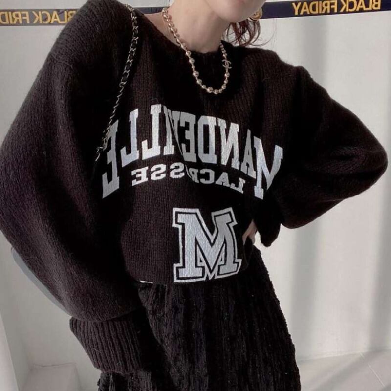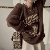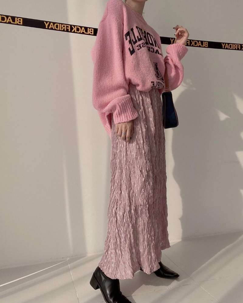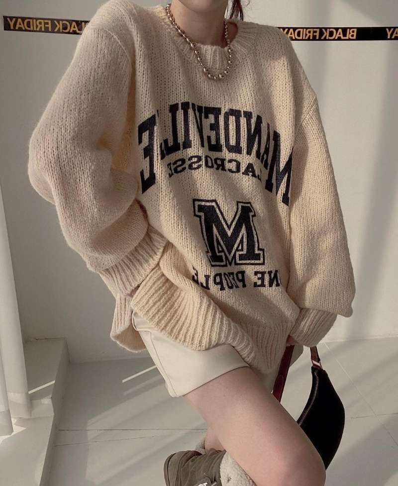 韓国ファッション秋物ウィンタープルオーバー ラウンドネックセーター プリントルーズレディース ロング 大人ガーリー スウィート キュート カジュアル オータム 冬物 Oネック 長袖 muzly30824155520 | Neatly