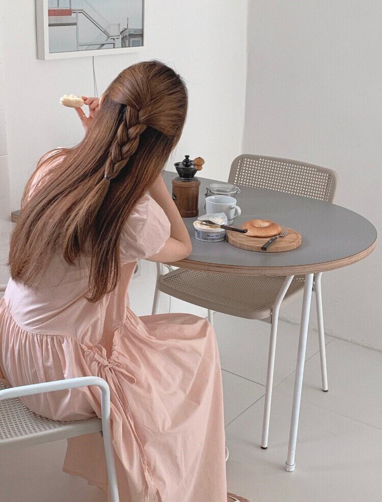 夏服韓国ファッションポケットパウダーワンピースソリッド カラー ロング 大人ガーリー スウィート キュート カジュアル 夏物 ソリッドカラー パフスリーブ 長袖 muzly97480013523 | Neatly