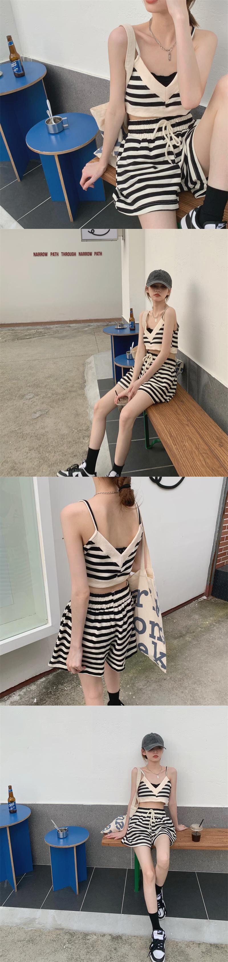 色:ブラックストラップ,赤いストリップスリング,ブラックストライプショーツ,赤いストリップショーツ
