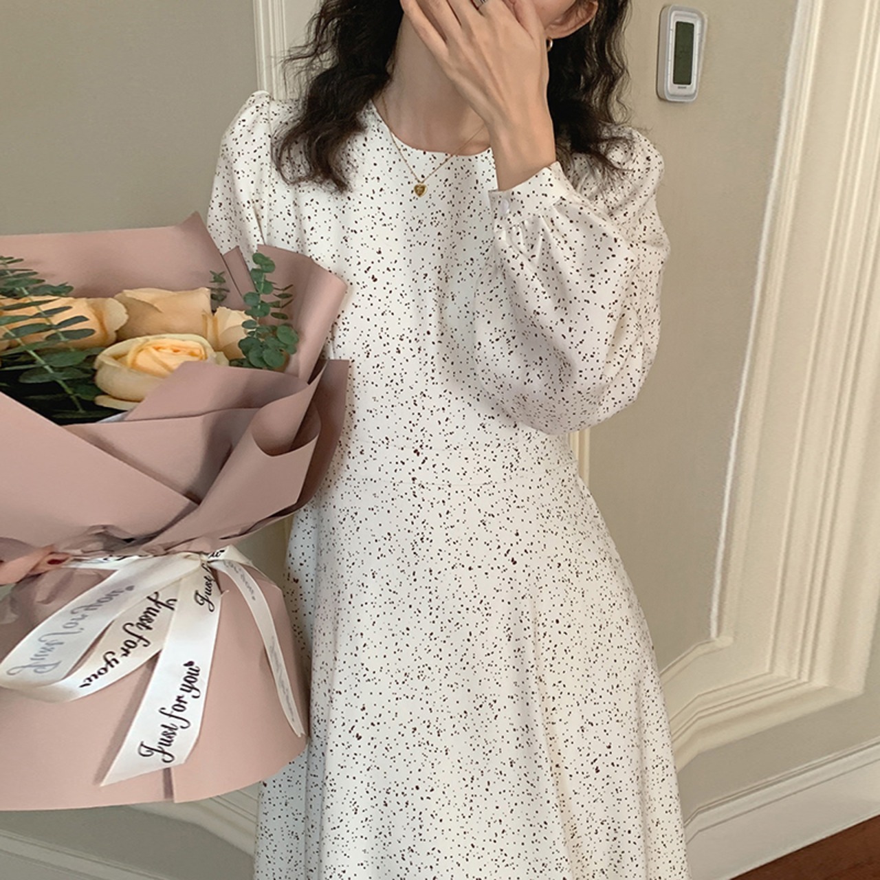 韓国ファッションスプリングラウンドネックフローラルシフォンスカート ロングレースウェストスリーブワンピースレディース 春物 花柄 Oネック ウエスト muzly35095660092 | Neatly