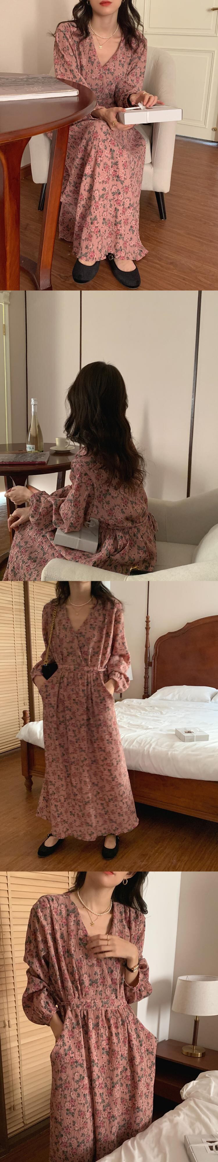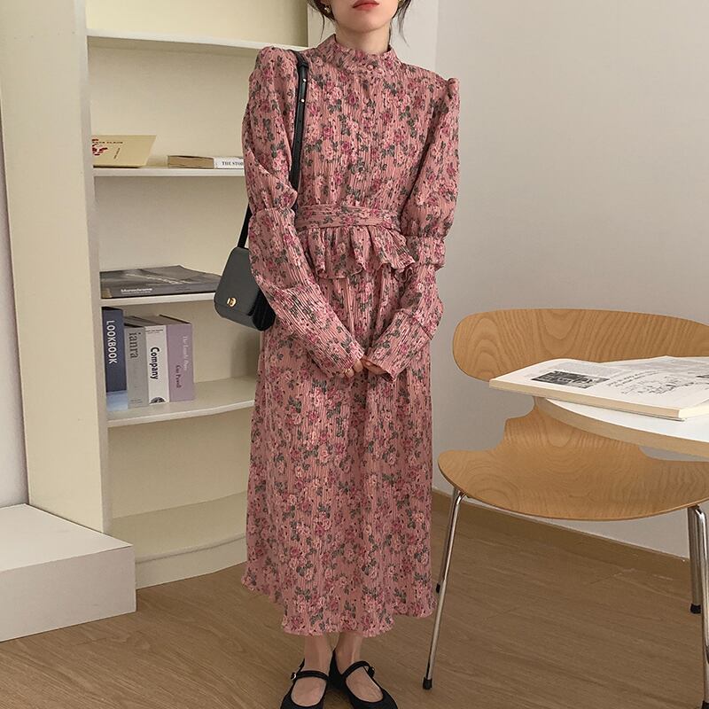 韓国ファッションスプリングFlowerデザイン スタイルワンピースロングストラップ ウェストレディース 大人ガーリー スウィート キュート カジュアル 春物 フラワーデザイン 長めのストラップ 長袖 ウエスト muzly79421022697 | Neatly