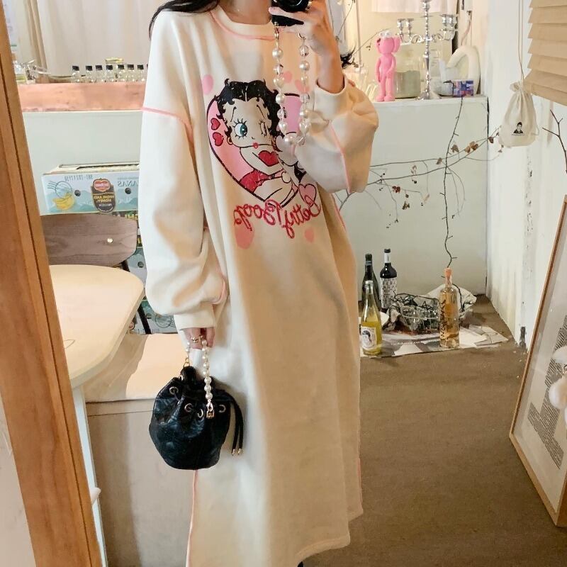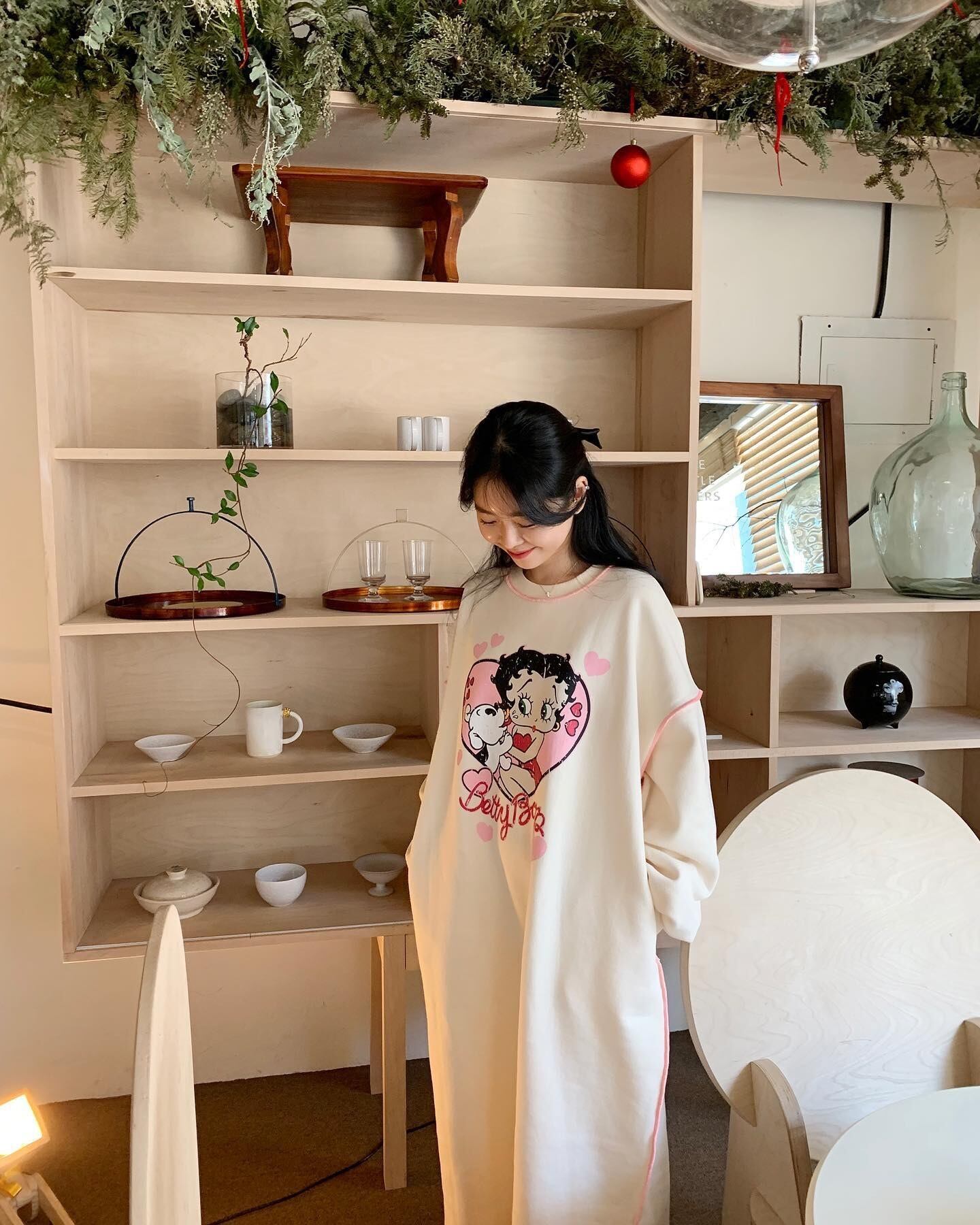 韓国ファッションスプリングプリントルーズロングカラーラインセーター ワンピースレディース 大人ガーリー スウィート キュート カジュアル 春物 長袖 muzly66989817233 | Neatly