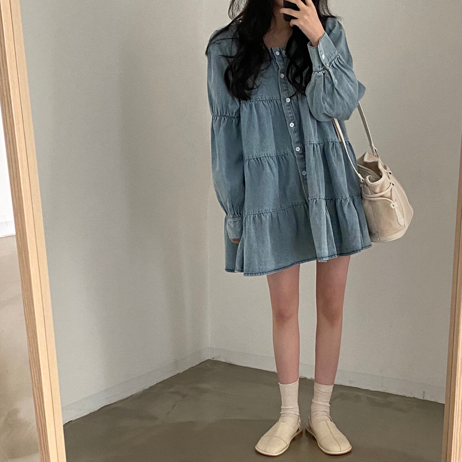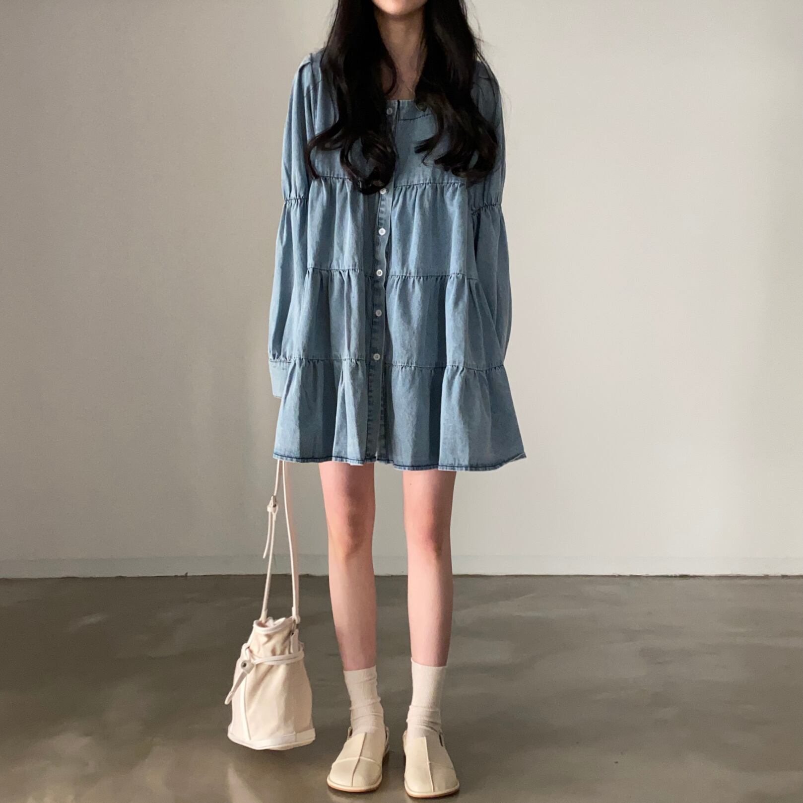 韓国ファッションスプリングカラースカート ルーズショートワンピースレディース ロング 大人ガーリー スウィート キュート カジュアル 春物 スクウェア 長袖 muzly55186277390 | Neatly