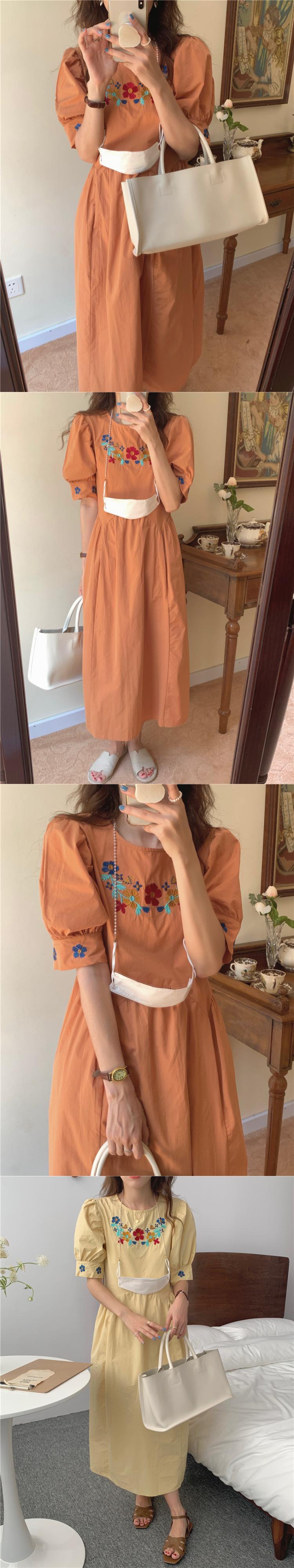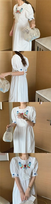 韓国ファッション夏服スタンダードラウンドネックFlowerデザイン スカート ウェストミニ ワンピースワンピースレディース レッド レトロ 刺繍 夏物 Oネック フラワーデザイン ウエスト ミドル丈 muzly56367646998 | Neatly