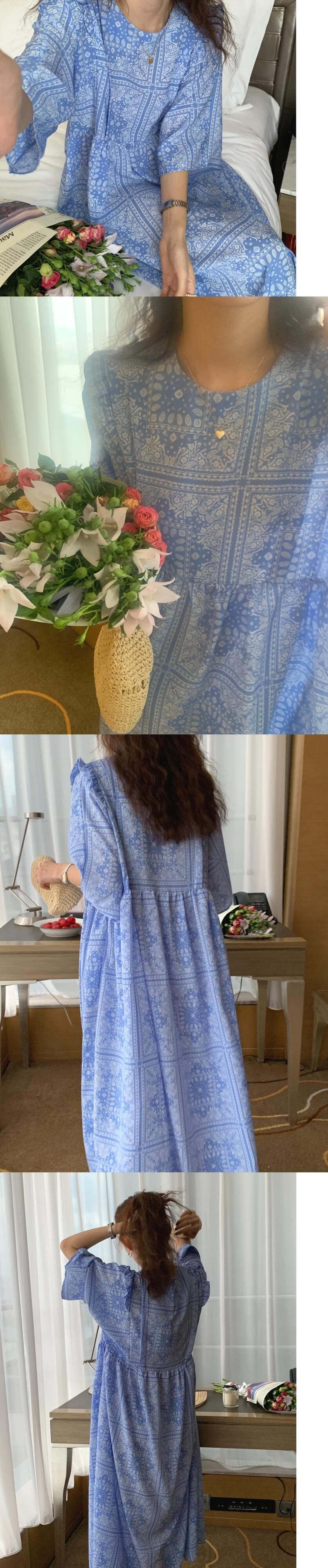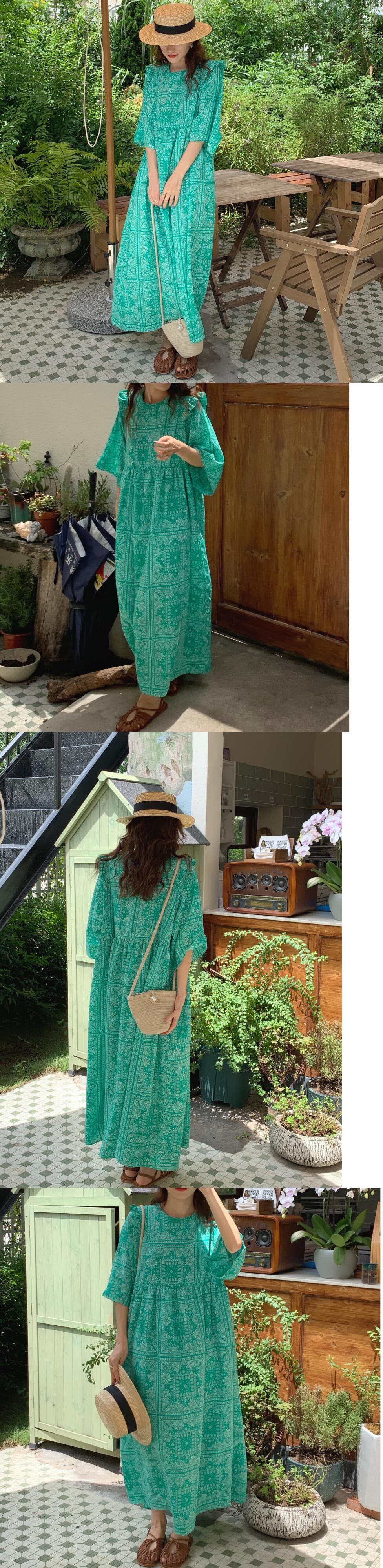 韓国ファッション夏服スタンダードスタイルルーズロングプリント柄ハイウェストウェスト薄手半袖スリーブワンピースレディース ショート レトロ ハーフスリーブ 夏物 ウエスト muzly66764076740 | Neatly