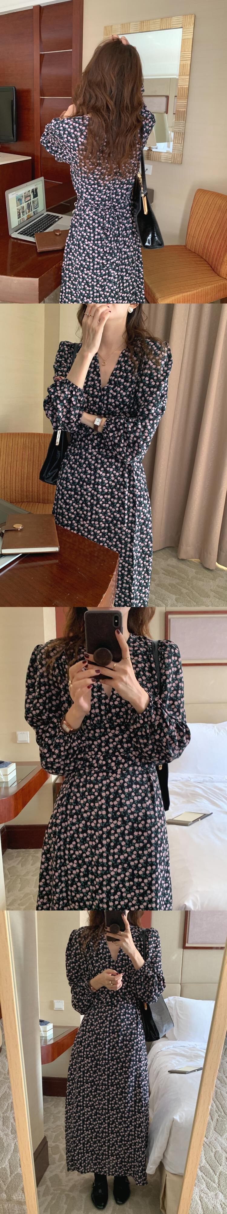 韓国ファッションNEWスプリングスタンダードVネックフローラルスカート ロングウェストシフォンワンピースレディース レトロ レース 春物 花柄 レースアップ 長袖 ウエスト muzly5197767446 | Neatly