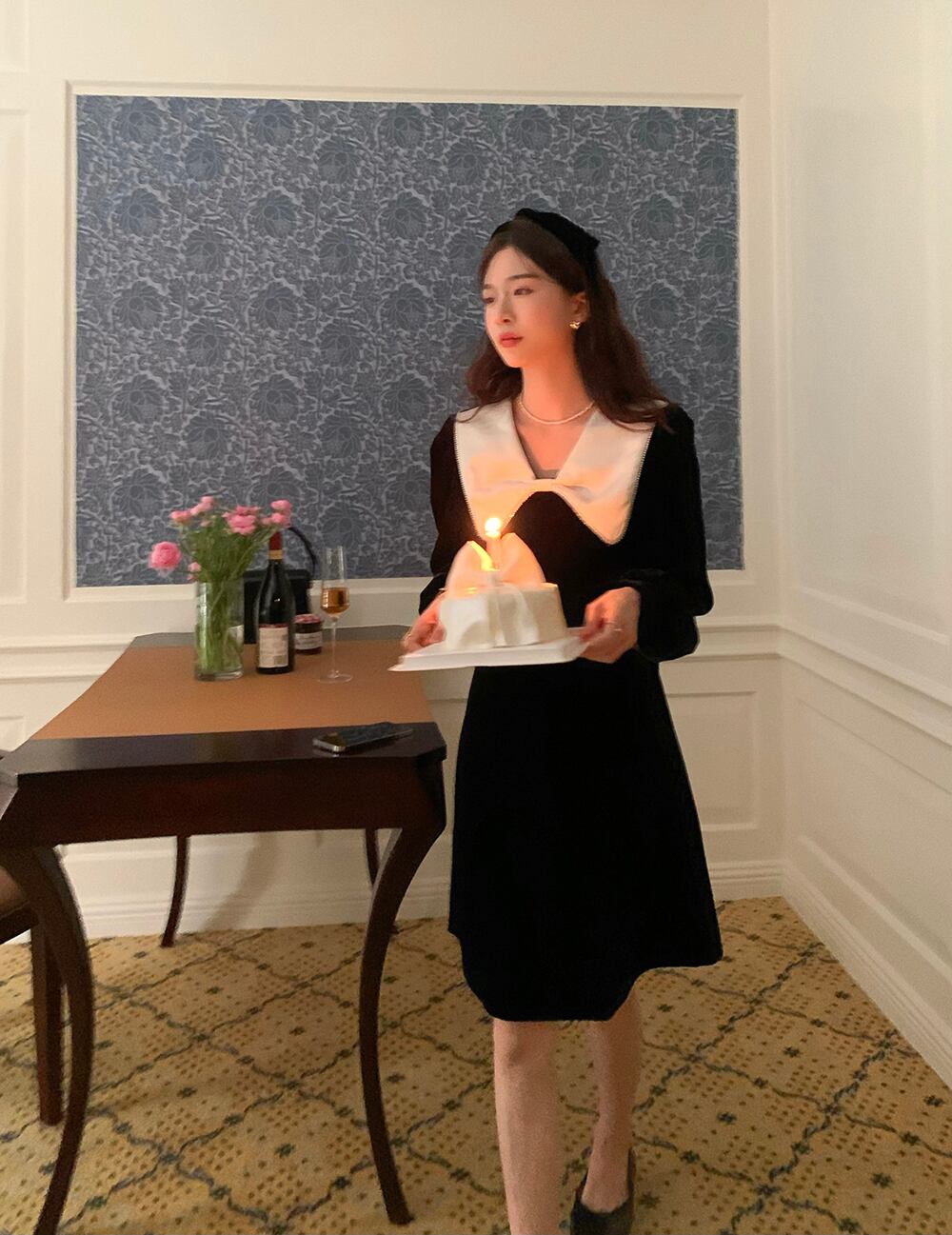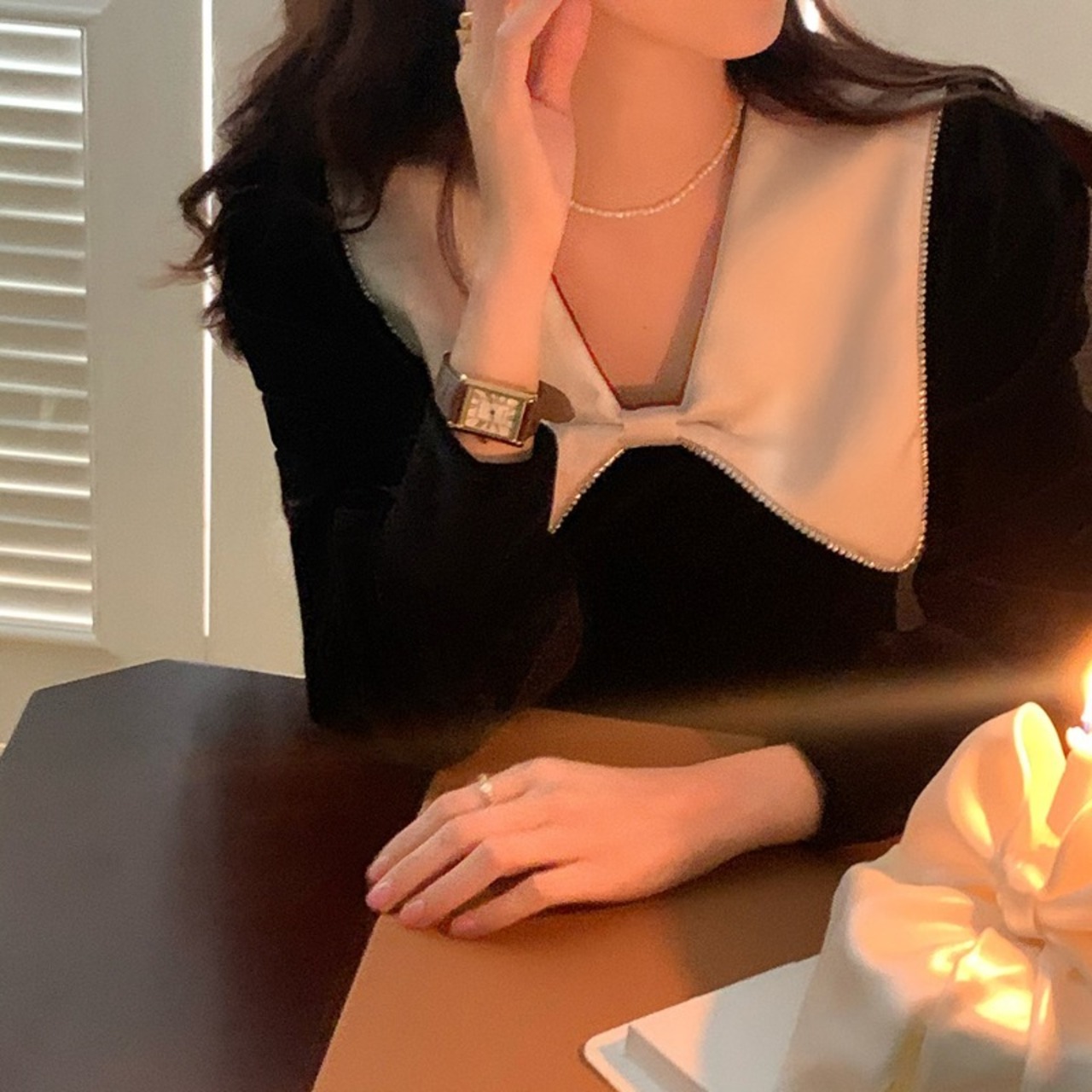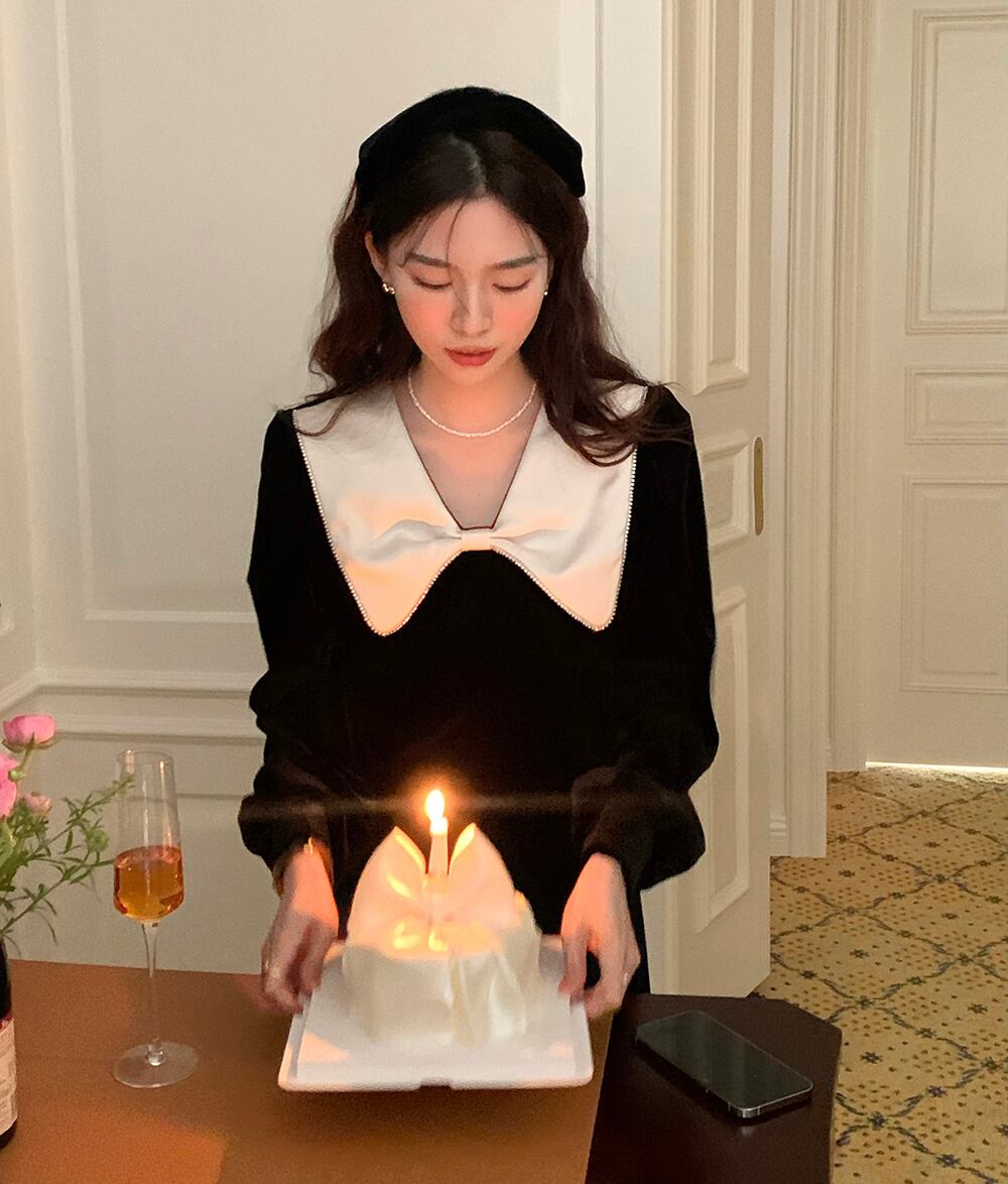 韓国ファッションNEWスプリングリボンVネックスタイルブラックワンピースハイウェストウェスト厚みスリム長袖スリーブレディース ロング 春物 ウエスト muzly61836048539 | Neatly
