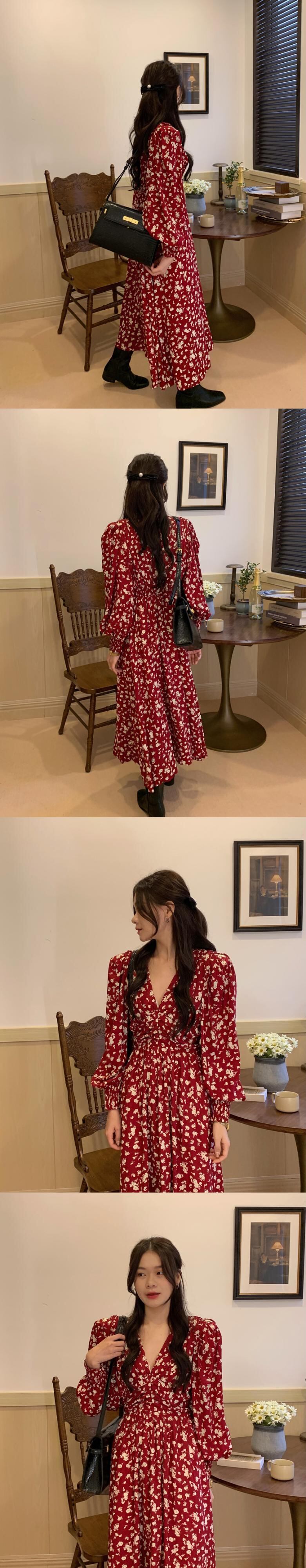 韓国ファッションNEWスプリングスタンダードVネックプリーツウェストフローラルスカート ロングスリーブシフォンワンピースレディース レトロ 春物 花柄 ウエスト muzly35723918488 | Neatly