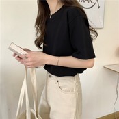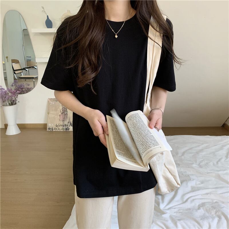 韓国ファッションNEWスプリングベーシックラウンドネックプルオーバー ゆったりシャツ ソリッド カラーカジュアルルーズTシャツレディース 春物 Oネック ソリッドカラー muzly34218297833 | Neatly