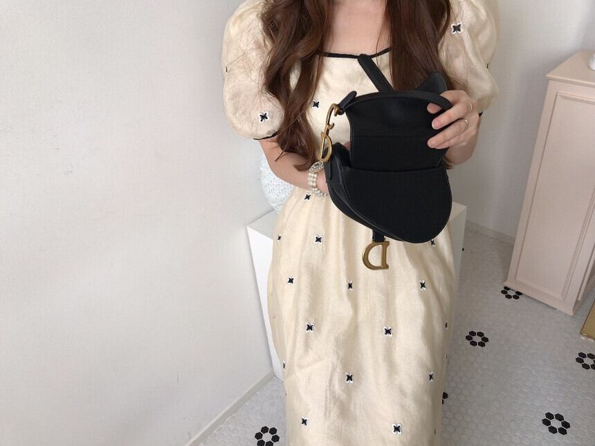 韓国ファッションスプリングFlowerデザイン ウェスト薄手スリーブワンピースレディース レッド 刺繍 春物 フラワーデザイン スクウェア ウエスト ミドル丈 muzly16471085808 | Neatly
