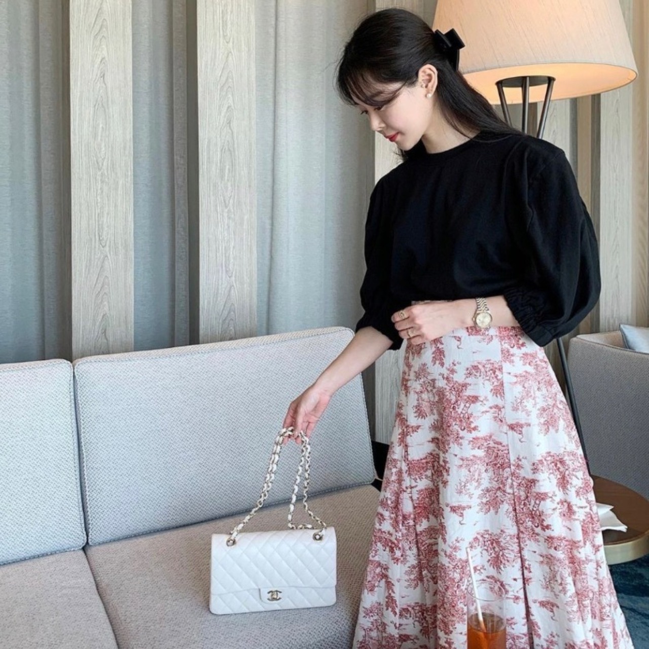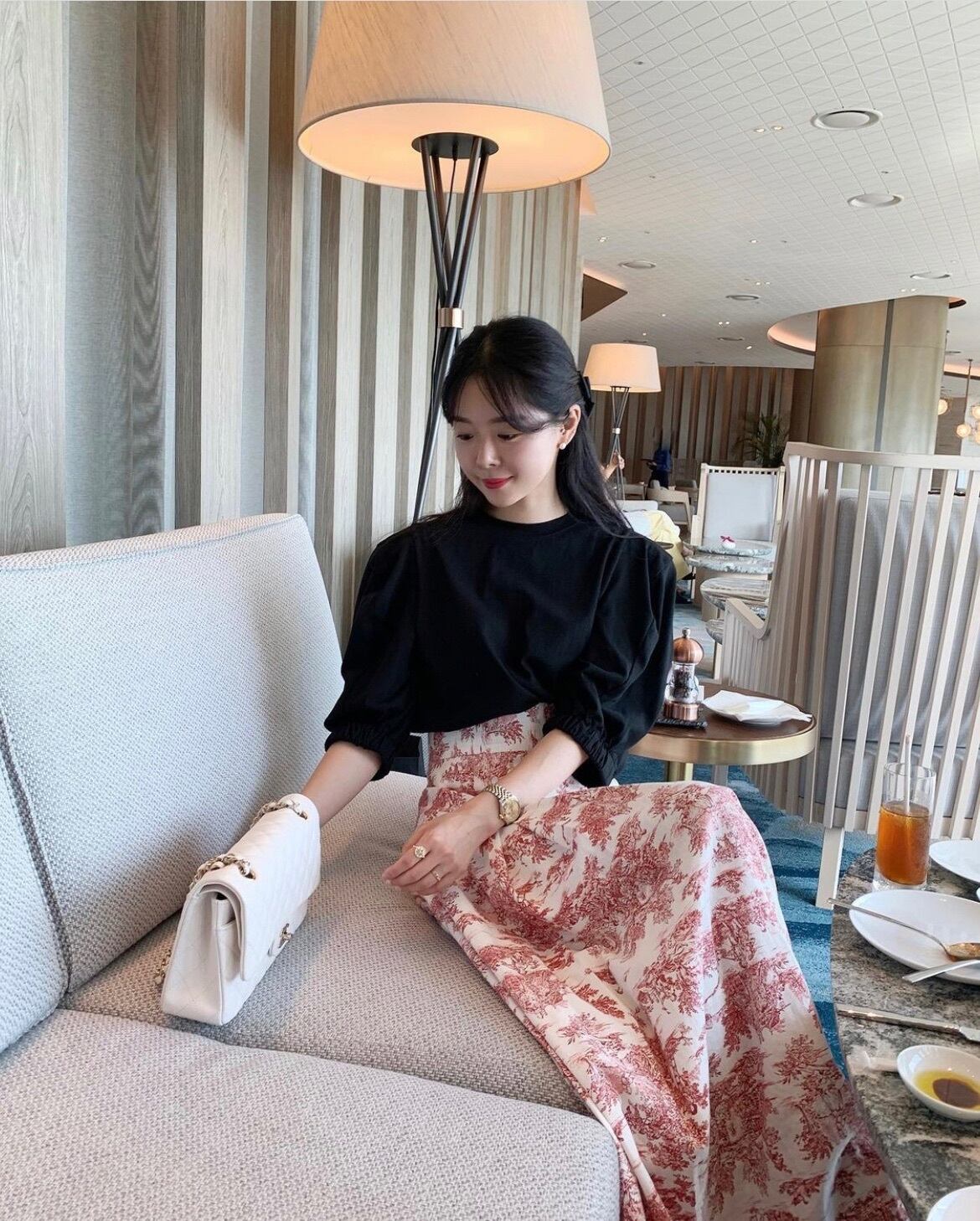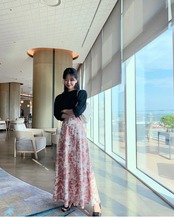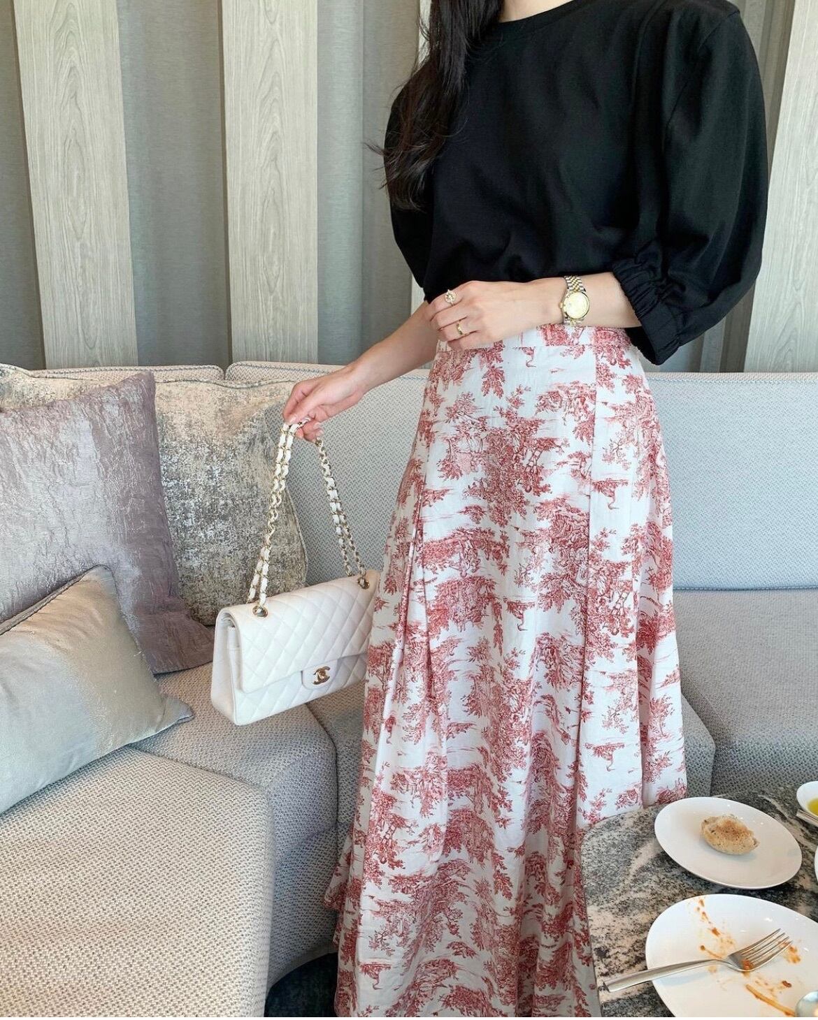 韓国ファッションNEW夏服ラウンドネックルーズスリーブシャツ ハイウェストウェストロングフローラルスカート レディース 夏物 花柄 Oネック ウエスト muzly3432046919 | Neatly
